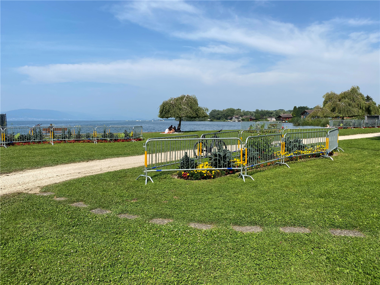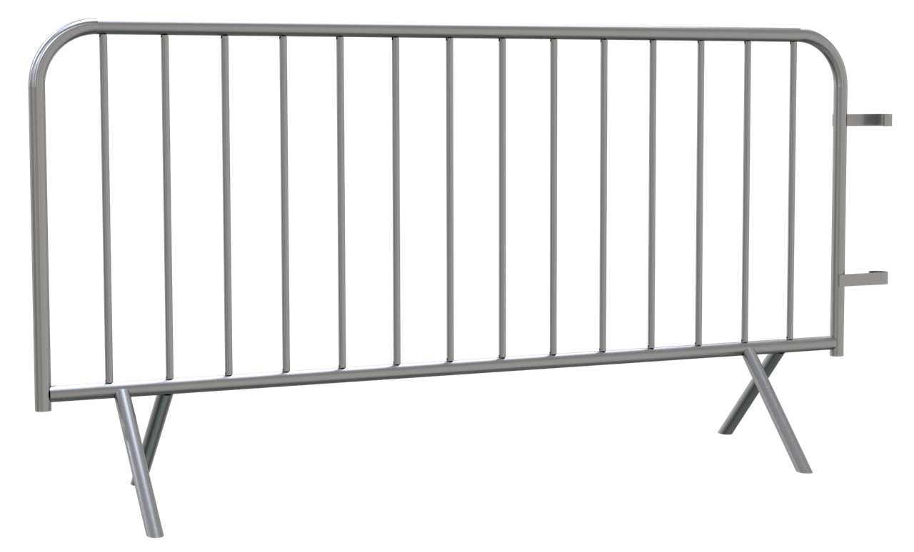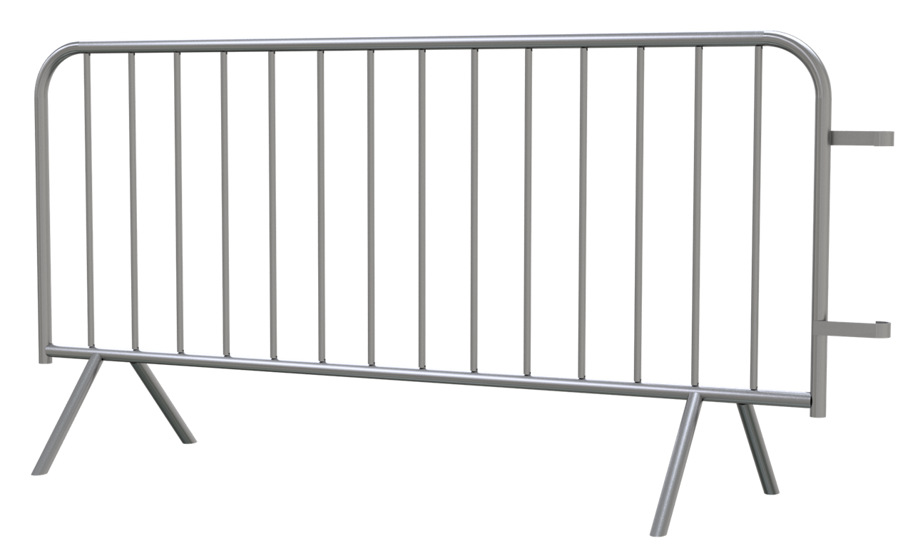 Absperrgitter Typ B zum vielseitigen Einsatz, zum Absperren und Sichern von Veranstaltungsbereichen, verzinkte Stahlkonstruktion aus Ø 33,7 mm Rundrohr verschweißt, seitlich am Gestell sind Verbindungsbügel angeschweißt, die ein Verbinden mehrerer Elemente ermöglichen, mit zwei geraden Füßen, die für eine standfeste Positionierung des Gitters sorgen, Gesamthöhe: 1,10 m, in verschiedenen Längenausführungen erhältlich, stabile senkrechte Stäbe sorgen für eine sichere Absperrung Auch in beschichteter Ausführung und / oder mit Reflektionsstreifen auf Anfrage erhältlich.