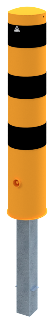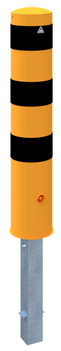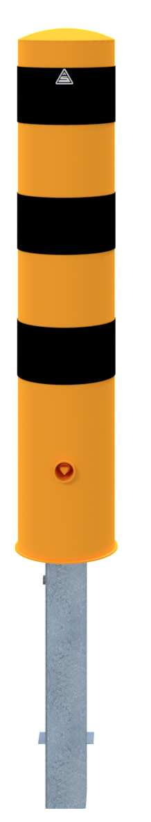 Stahlrohrpoller Ø 193 x 3,6 mm feuerverzinkt und gelb beschichtet mit drei schwarzen Streifen