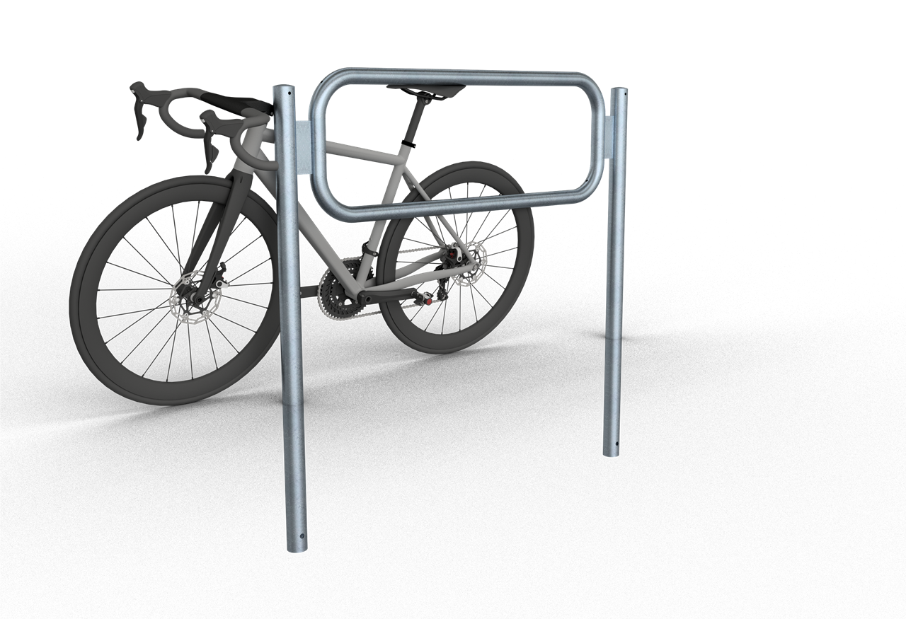 Anlehnbügel zum Einbetonieren 1425mm lang Höhe Überflur 900mm Rohrrahmen aus 48mm, senkrechtes Standrohr aus 60mm Rundrohr, feuerverzinkt