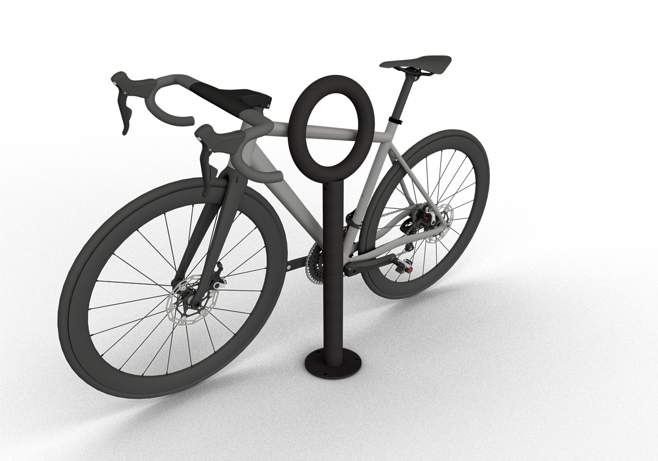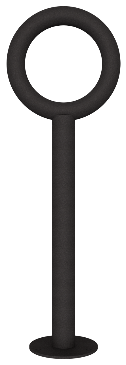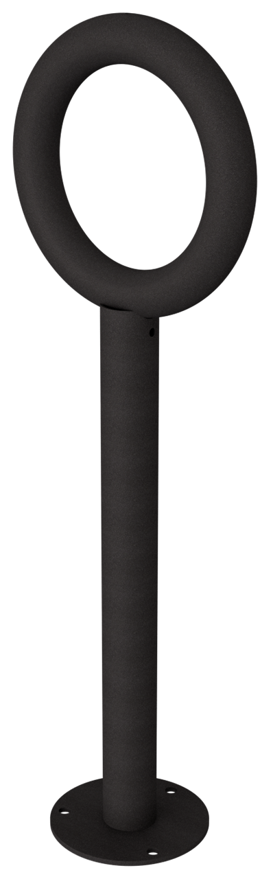 Anlehnpfosten mit Rohring senkrechter Pfosten Stahlrohr Ø 60mm, Rohring Ø 300mm aus Stahlrohr Ø 48mm, zum Aufdübeln mit Bodenplatte Ø 180mm, Gesamthöhe 900mm, feuerverzinkt, beschichtet DB703