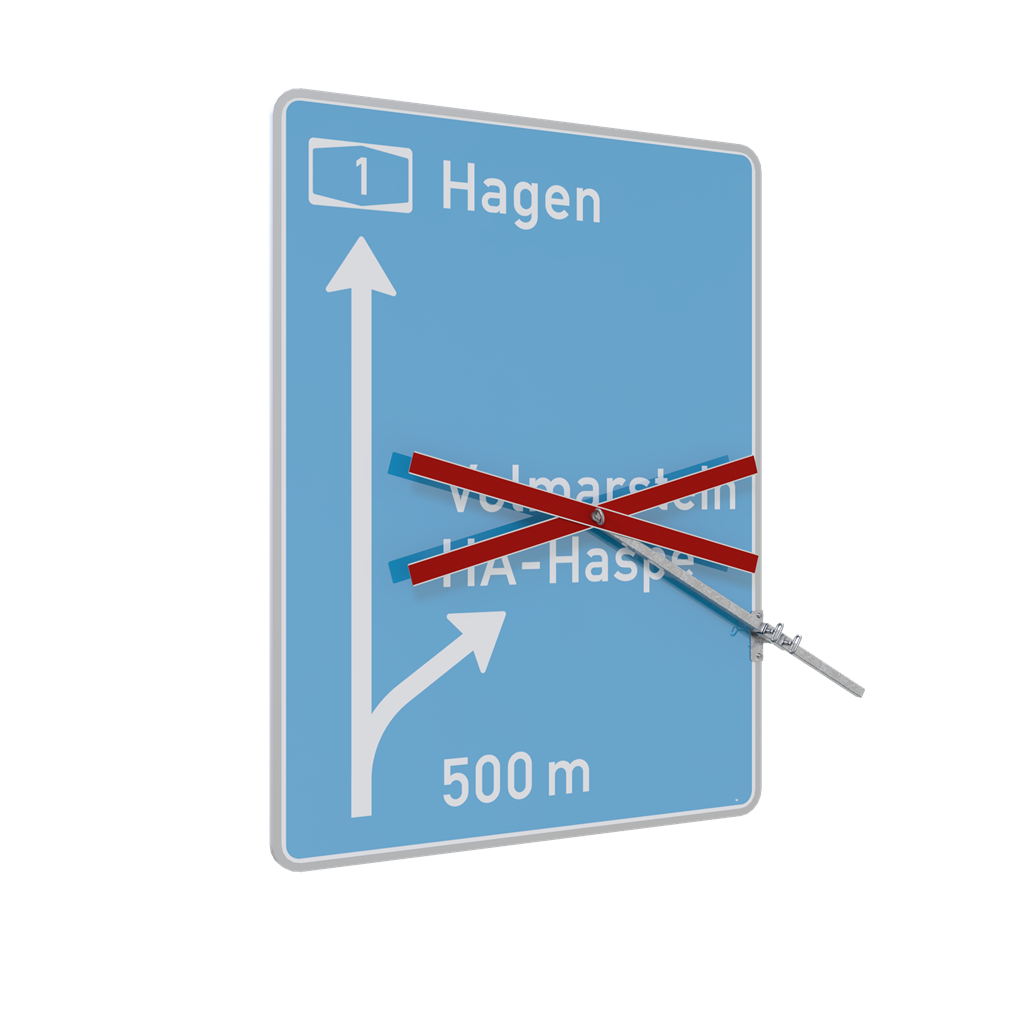 Auskreuzung Die Auskreuzung setzt Verkehrszeichen deutlich außer Kraft. ·aus stabilen Aluminiumprofilen ·mit RA2 Folie ·inkl. Ausleger aus verzinktem Vierkantrohr ·verbunden mit einer Feststellschraube, für feste Position am Verkehrszeichen, ·die Auskreuzungsvorrichtung wird mit einer speziellen Klemmvorrichtung an der Verkehrstafel fixiert, ohne dass die Folie auf den Verkehrszeichen beschädigt wird ·die Schenkel des Kreuzes können im Winkel und der Auslegerarm in der Länge beliebig verstellt werden ·die Klemmvorrichtung ist nicht im Lieferumfang enthalten, bitte separat bestellen (Art.-Nr. 35370/1/2) Weitere Größen auf Anfrage erhältlich.