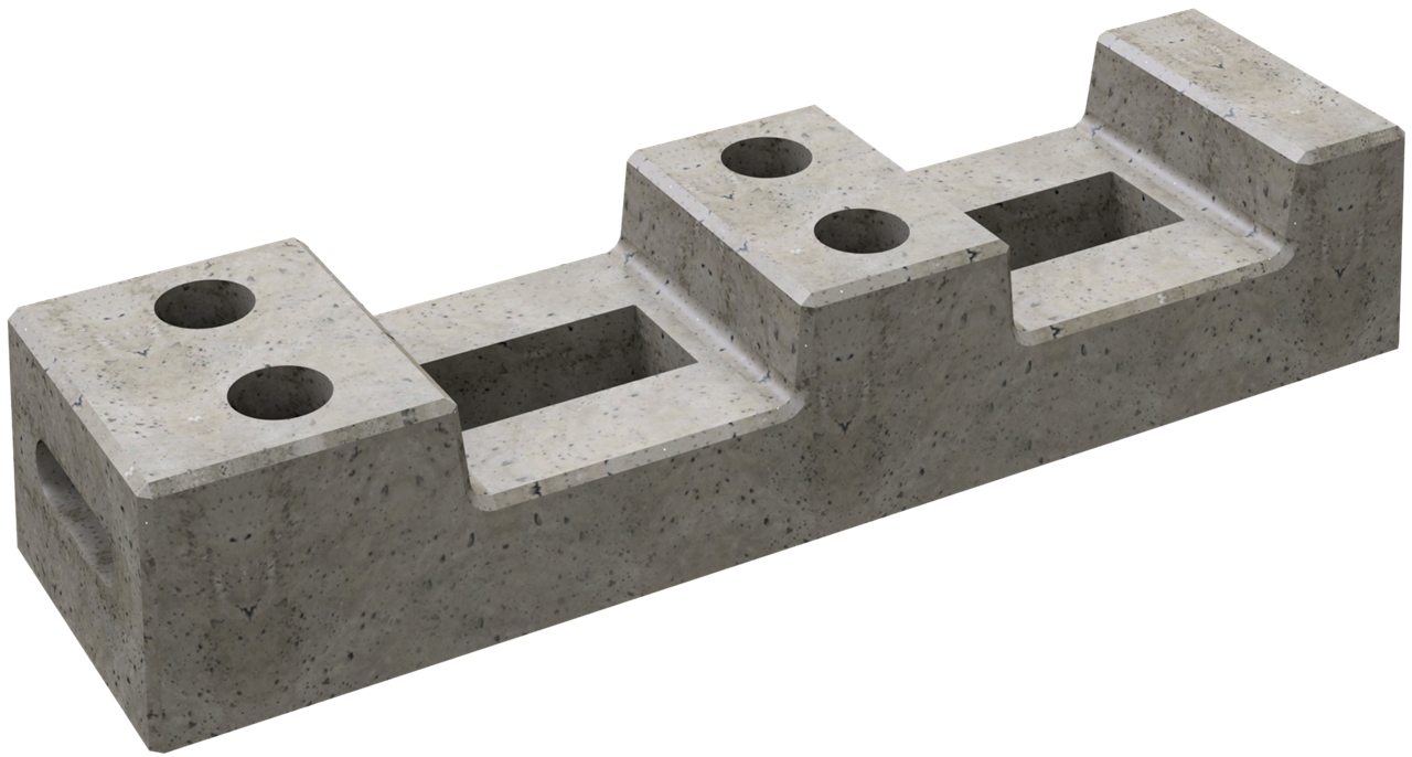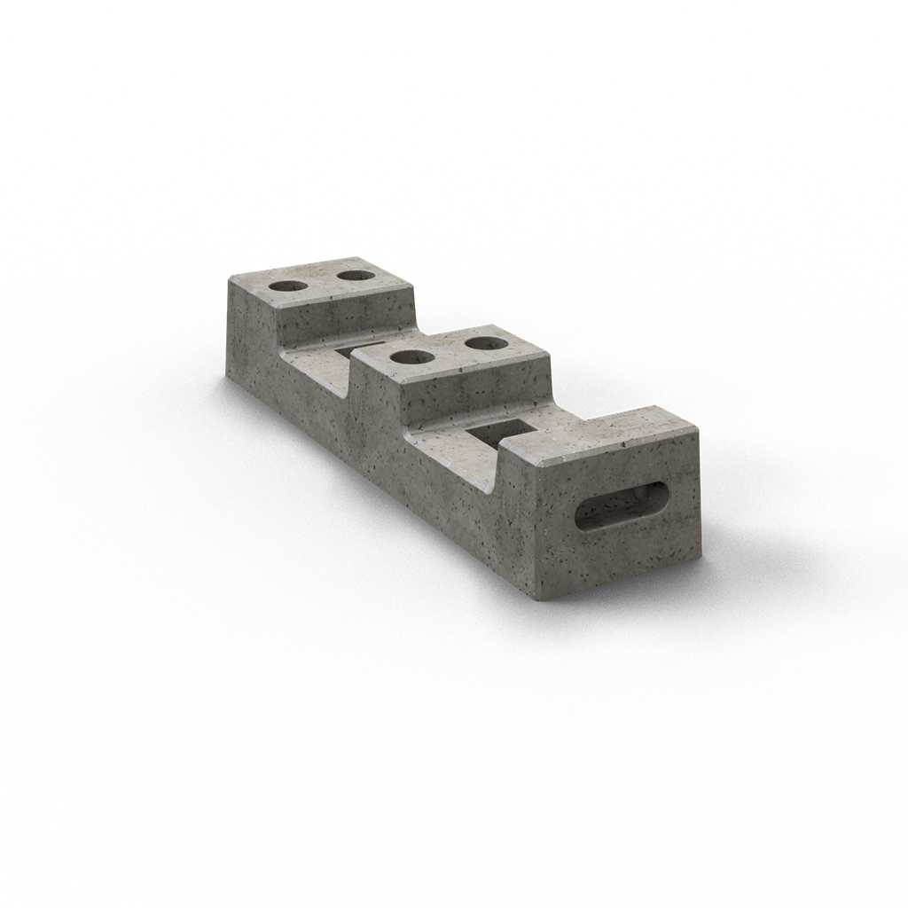 Schake Bauzaunfuß aus Beton 3F101 Länge: 700 mm Höhe: 130 mm Breite: 190 mm mit 4 Löchern (Ø 46 mm) 25 kg