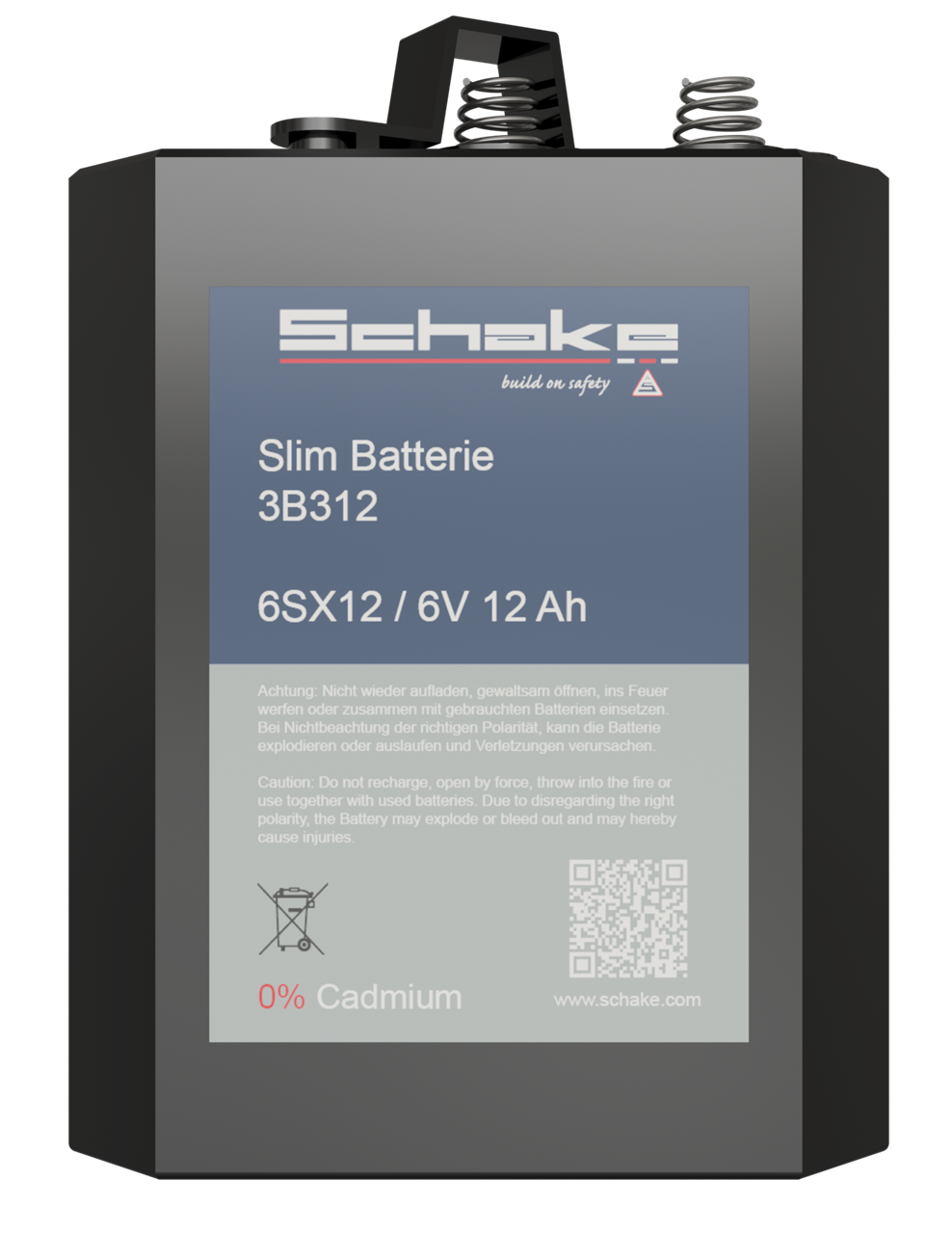 Schake Blockbatterie 3B312 6V/12 AH 6SX12 Luft Alkaline Batterie extra flache, leichte Batterie kann in alle bestehenden Systeme, die bisher mit schwerer Blockbatterie betrieben wurden, diagonal eingesetzt werden. Dauerlicht: bis ca. 1100 Std. B