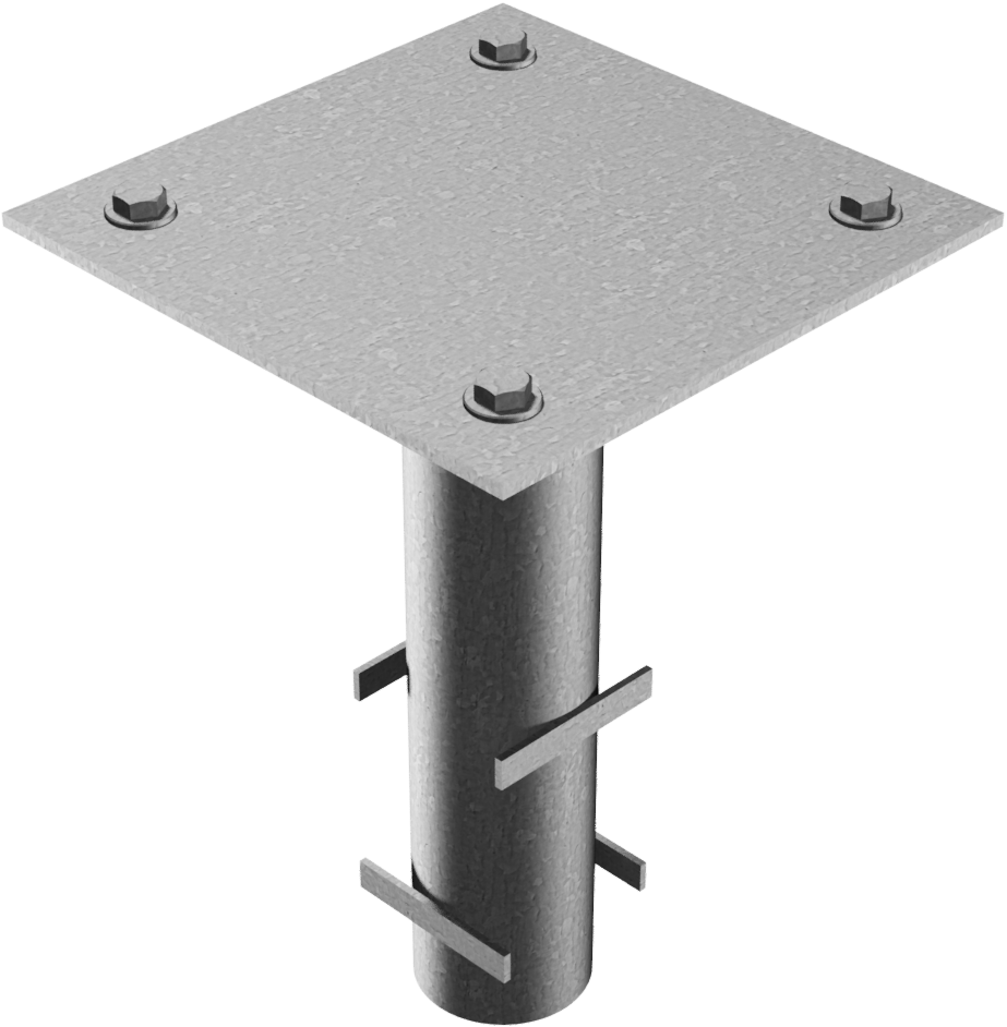 Bodenhülse mit Befestigungsplatte für Hauptstütze