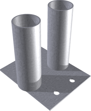 Bodenplatte ·zum Einstecken der Standrohre, ·für den ortsfesten Einbau ·4 Bohrungen in der Grundplatte ·zum Aufdübeln ·Abmaße: 130 x 160 mm
