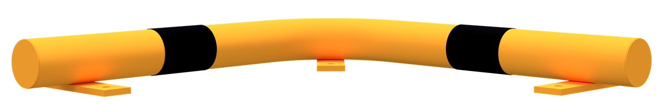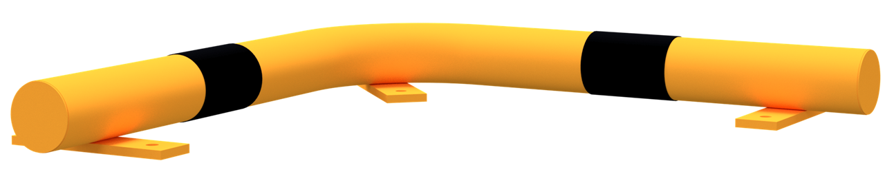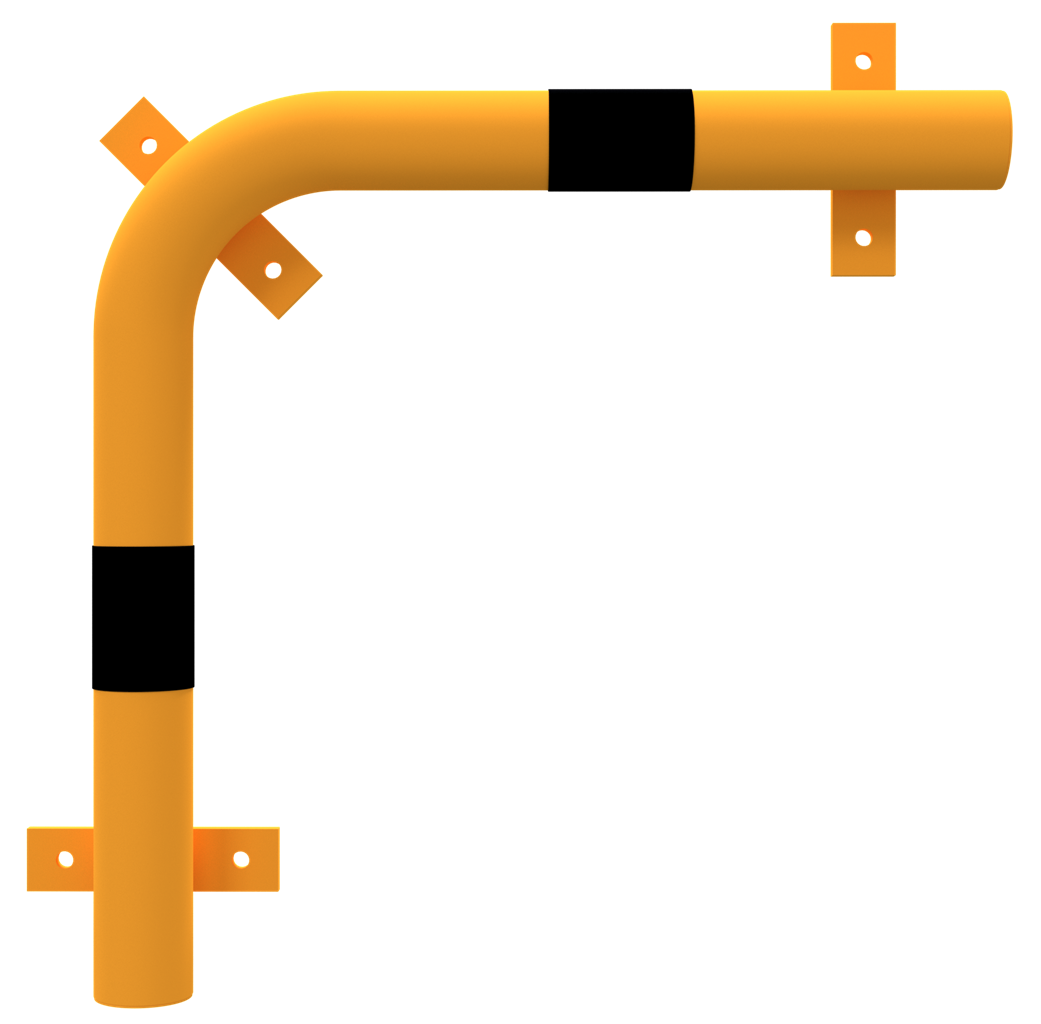 Eckrammschutz 90°, Stahlrundrohr Ø 76mm, gelb pulverbeschichtet mit schwarzen Streifen, Schenkellänge 700 mm, Höhe 86 mm