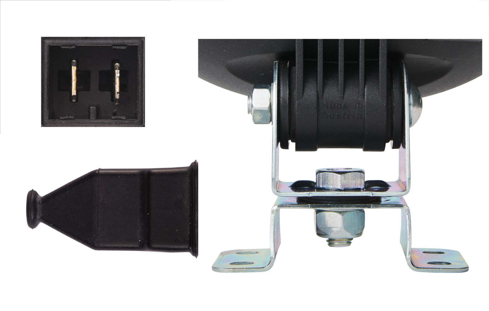 - Halogen-Arbeitsscheinwerfer mit FF-Reflektor aus Aluminiumdruckguss.