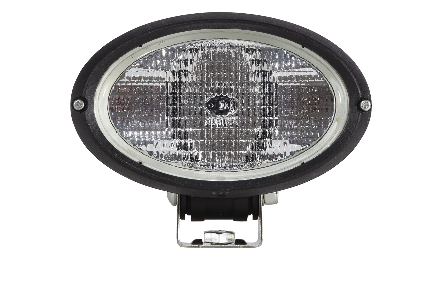Der Halogen-Arbeitsscheinwerfer mit FF-Reflektor aus Aluminiumdruckguss ist mit extrem breiter und homogener Nahfeldausleuchtung oder auch mit weitreichender Ausleuchtung verfügbar. Beide Ausleuchtungen sind als Klarglas-Versionen erhältlich. Neben der Standard-Einkammerlösung (1x H3) ist der OVAL 100 Arbeitsscheinwerfer auch als Double Beam (2x H3) mit doppelter Lichtleistung lieferbar. Das Gehäuse dieses robusten Arbeitsscheinwerfers besteht aus säure- und korrosionsbeständigem, glasfaserverstärkten Kunststoff . Das Gehäuse ist zum Schutz der Streuscheibe mit einem hervorstehenden Rand versehen. Bei Versionen mit Schwingungsdämpfung kommt ein patentiertes Dämpfungssystem zum Einsatz, das den Scheinwerfer vor Vibrationen schützt, und somit die Lebensdauer der Glühlampe verlängert.