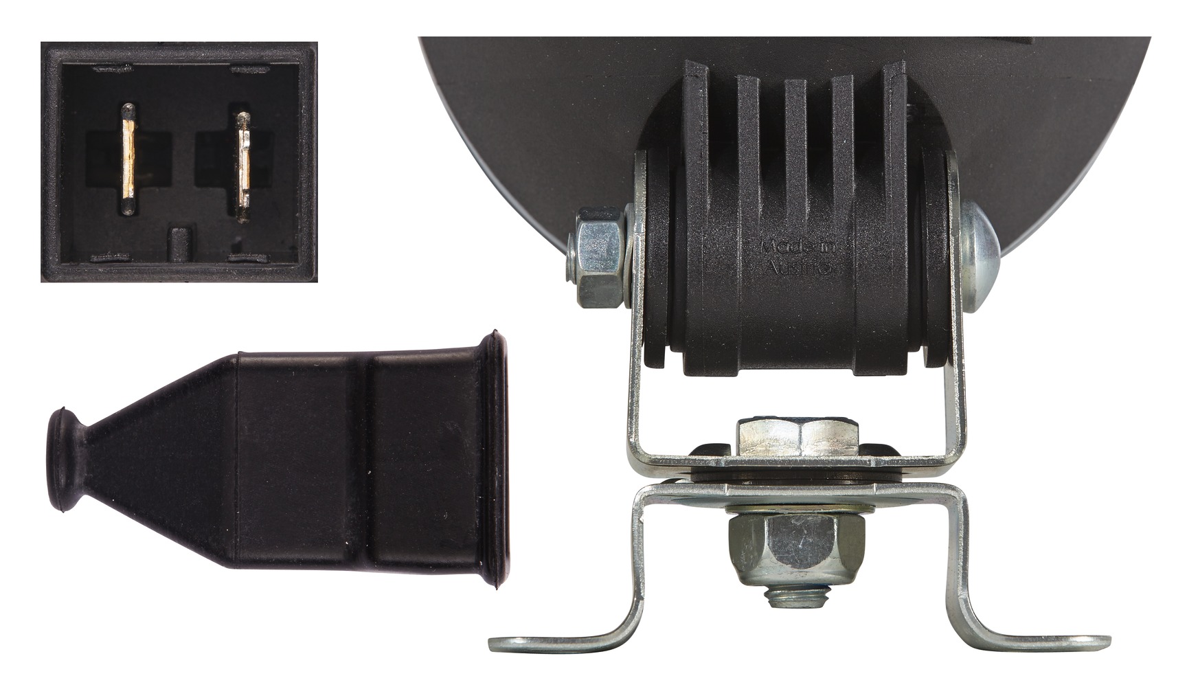 - Das schwarze Lampengehäuse dieses robusten Arbeitsscheinwerfers besteht aus glasfaserverstärktem Kunststoff, welcher säurebeständig und korrosionsbeständig ist.
