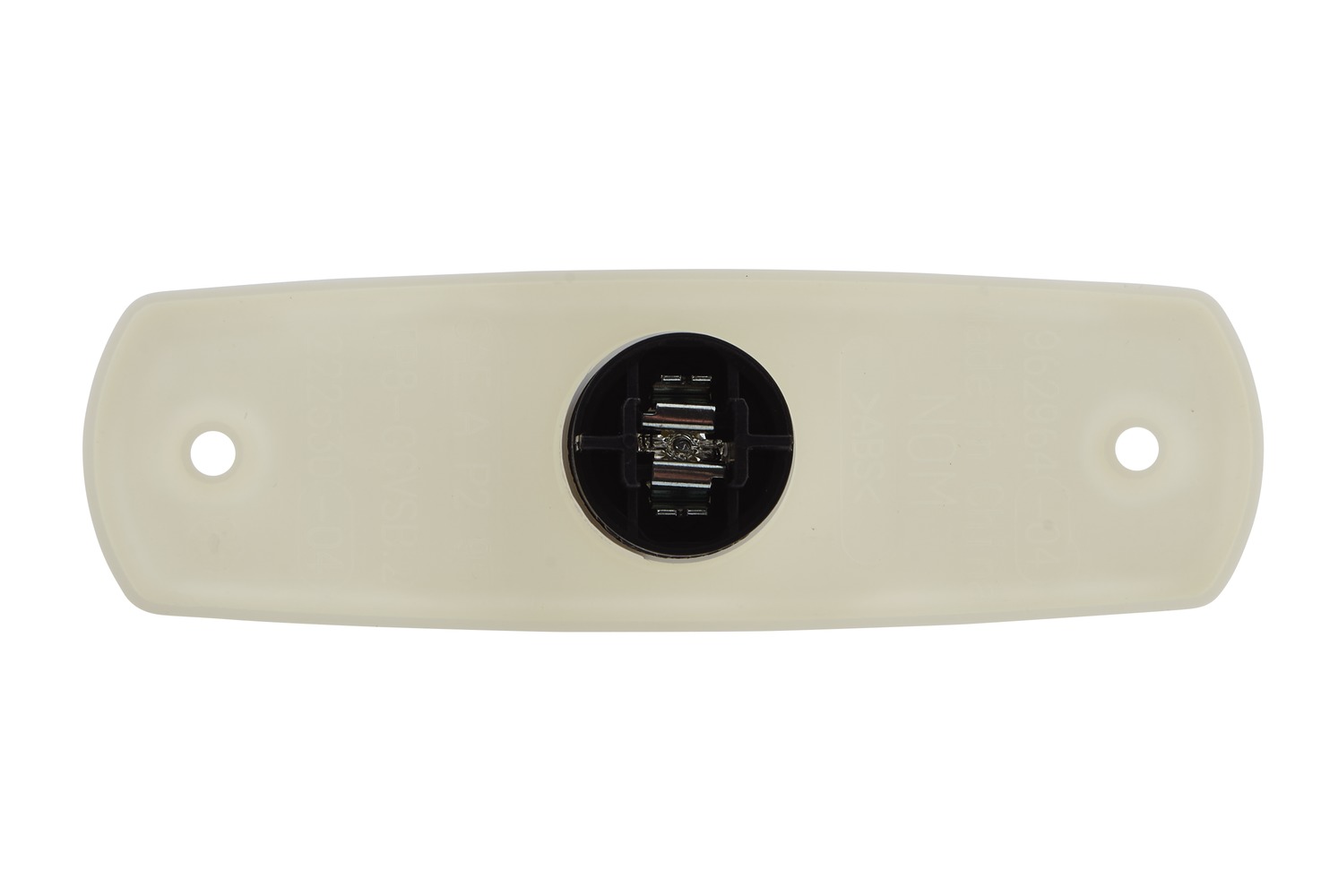 - Lampenart: W3W, mit 12V-Glühlampe und weißer Grundplatte aus Kunststoff, für wellige Außenwände, 2 Löcher Ø 4 mm für Befestigungsschrauben