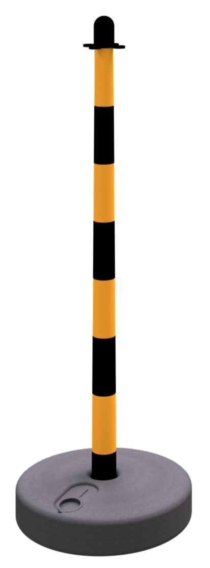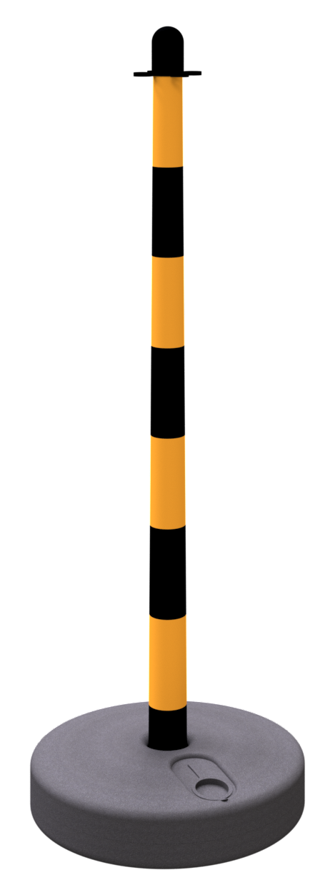 Kettenständer aus Kunststoff Pfosten Ø 40mm, Länge: 900mm gelb/schwarz, mit Ösen Fußplatte zum Befüllen