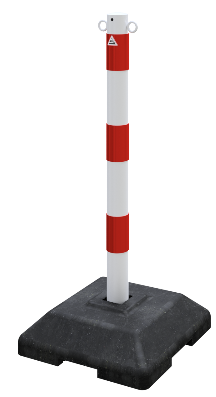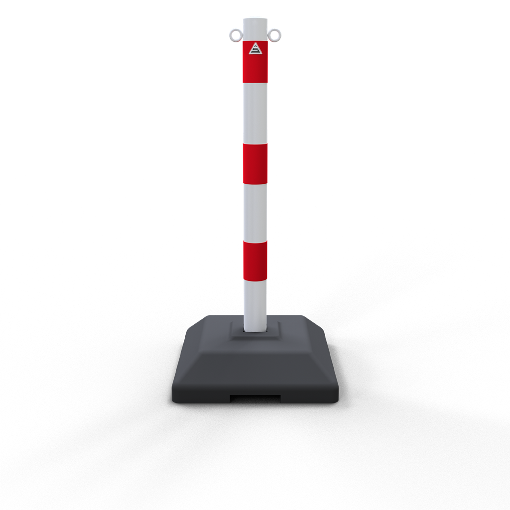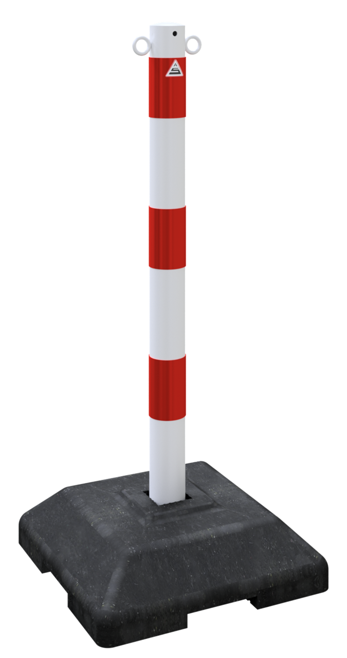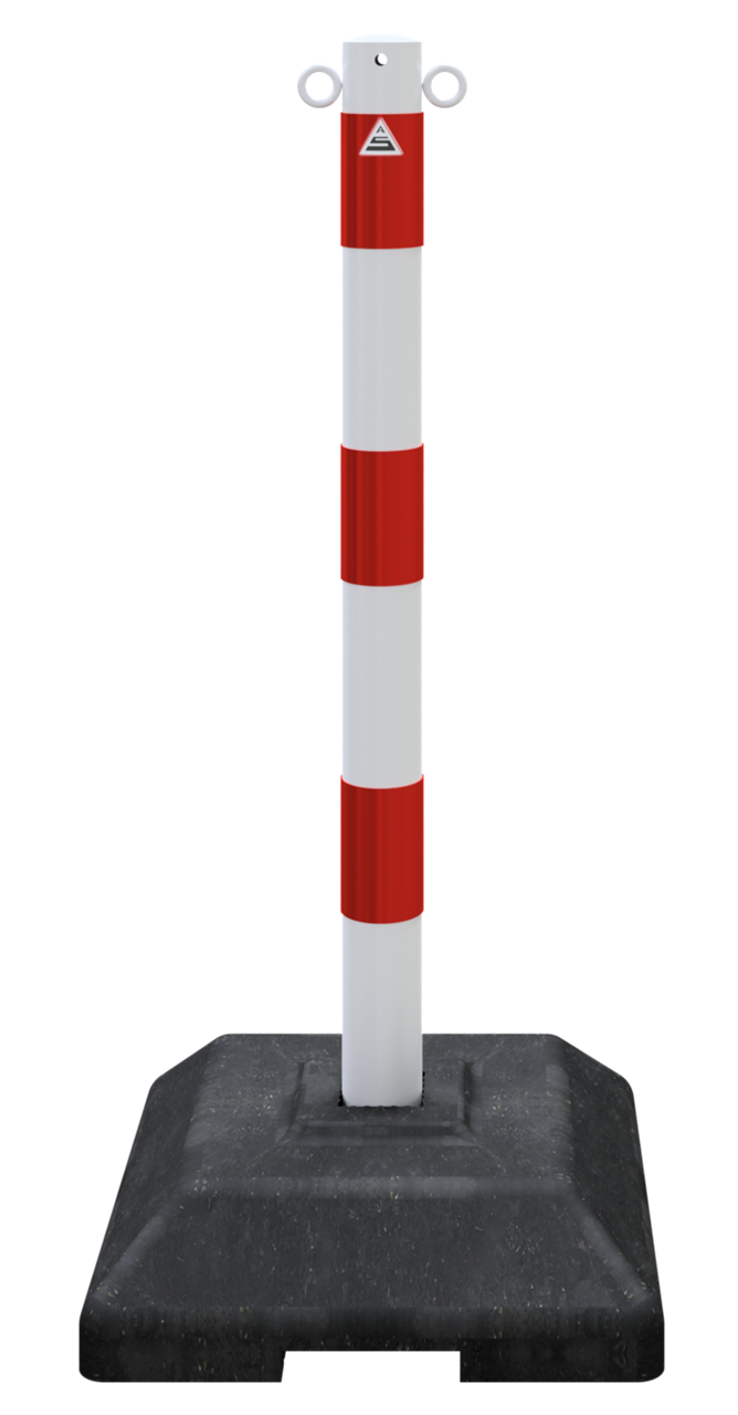 Kettenständer Pfosten aus Stahl Ø 60mm, Länge: 900mm feuerverzinkt, weiß / rot, mit 2 Ösen inkl. Recycling - Fußplatte 400x400mm