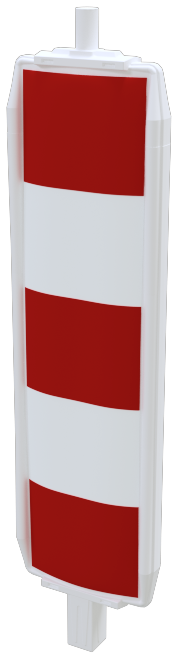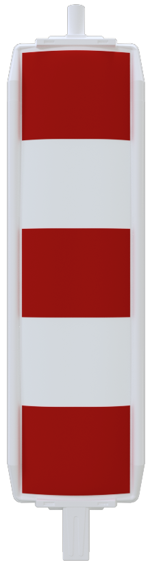 Kunststoffbake Typ 60 ·beklebt mit horizontal geblockter Folie ·geschützter Folienbereich durch Außenkante ·Stutzen 60 x 60 mm ·oberer Stutzen Ø 42 mm für Lampenbefestigung ·rot/weiß