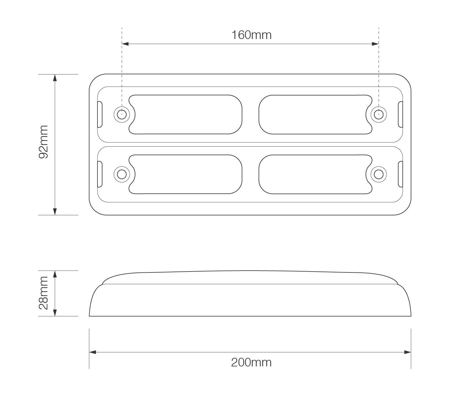 - Abmessungen 200 mm x 92 mm x 28 mm