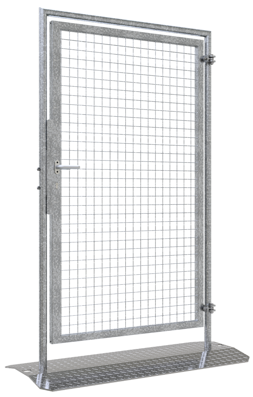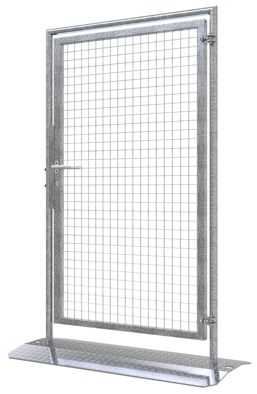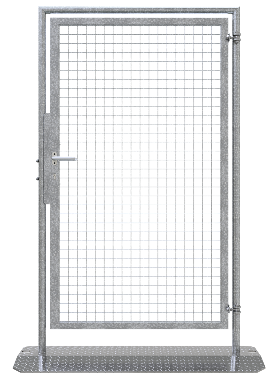 Mobilzaun Tür Um auf Baustellen oder anderen mobilen EInrichtungen einen guten und sicheren Eingang bzw. Ausgang aus einem mit Bauzaun gesicherten Bereich zu gewährleisten. ·aus einer stabilen Rahmenkonstruktion verschweißt ·Gesamthöhe: 1981 mm ·Durchgangshöhe: 1920 mm ·Durchgangsbreite: 1000 mm