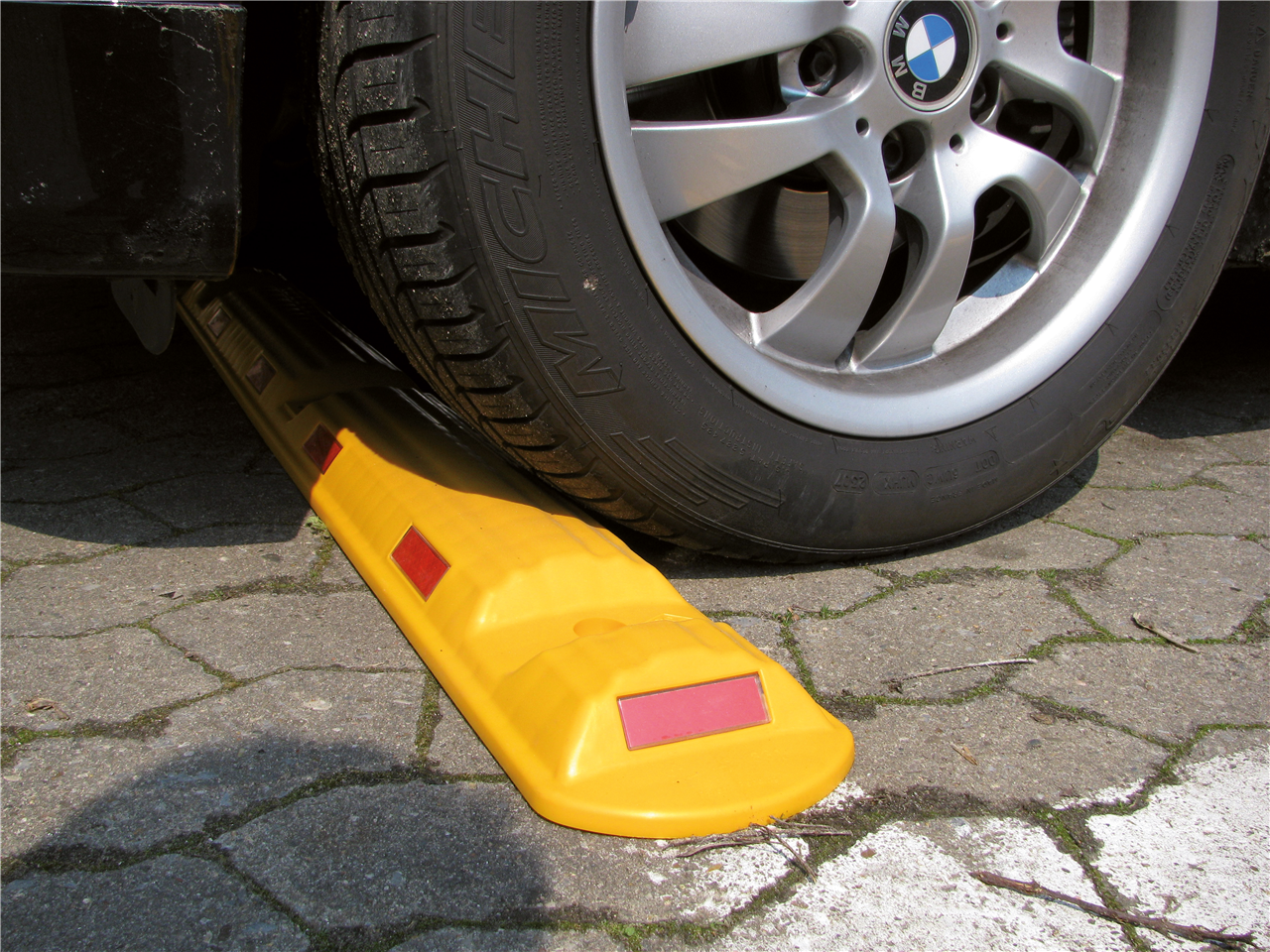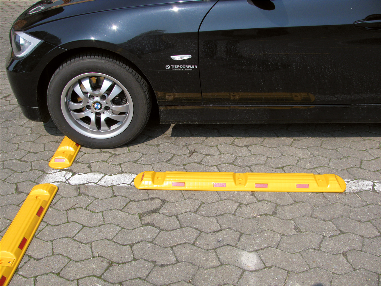 Park- und Leitschwelle aus Recycling mit Reflektoren 1170 mm x 150 mm x 50 mm mit 3 Schrauben und Dübel