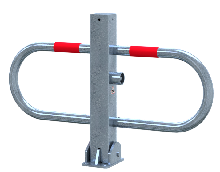 Schake Parkplatzsperre umlegbar mit Dreikantverschluss Sch-4709FU feuerverzinkt, mit rot reflektierenden Leuchtstreifen