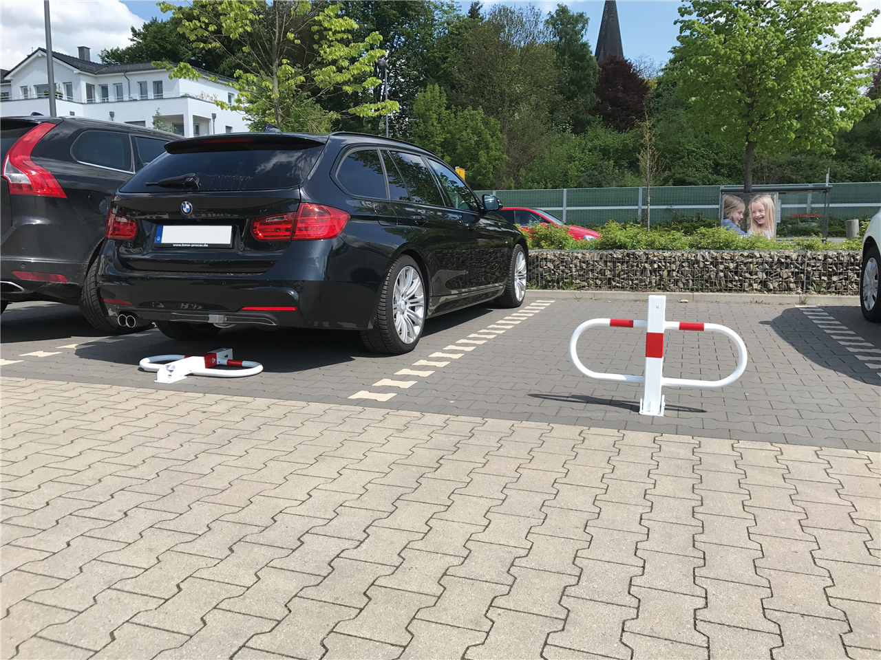 Produktinformationen "Schake Parkplatzsperre umlegbar mit Dreikantverschluss Sch-4709FU feuerverzinkt, mit rot reflektierenden Leuchtstreifen"