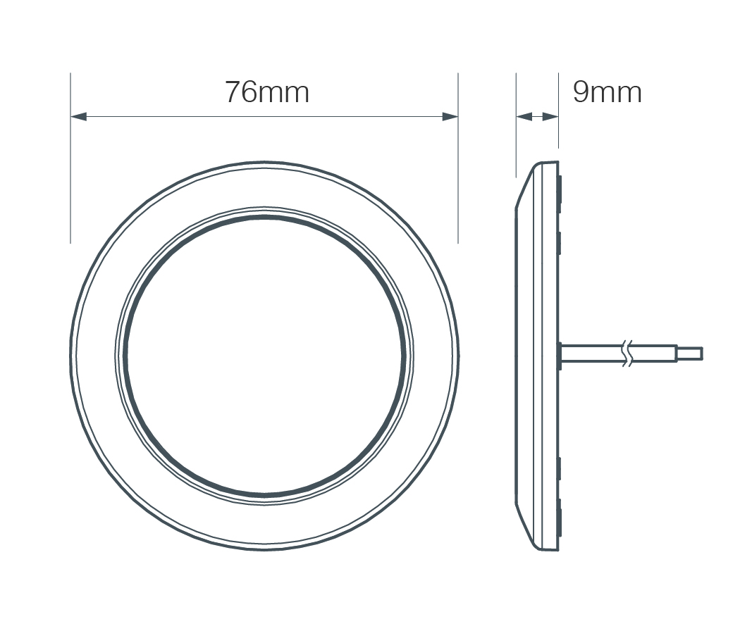 - Abmessungen 76 mm Ø x 9 mm Aufbauhöhe