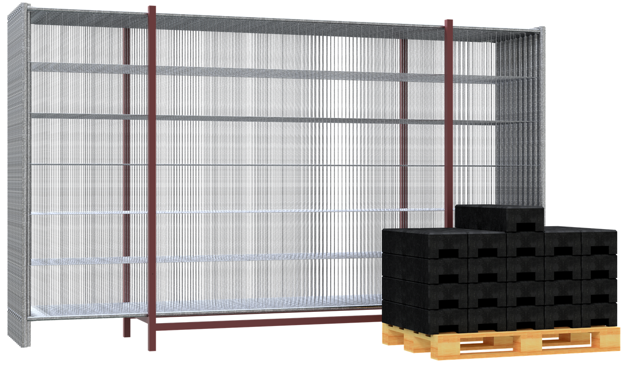 Mobilzaun SET bestehend aus: 20x Mobil-Bauzaun 1x Bauzauntransportpalette lackiert (Art.-Nr. 3B216) 20x Verbindungsschelle für Bauzaun (Art.-Nr. 3VB10) 21x Recyclingfuß für Bauzaun 20 kg (Art.-Nr. 3F110)