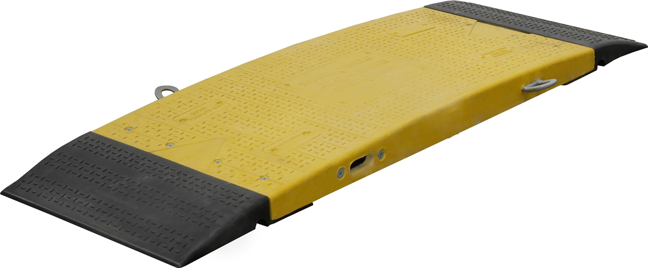 Grabenbrückenelement aus Kunststoff ·Maße: 1500 mm x 500 mm ·belastbar bis zu 44 t ·eine Verbindung mehrerer Elemente ist durch Stahlklammern möglich ·Einzelradlast: 6 t bei 700 mm Grabenbreite ·die rutschfeste Oberfläche sorgt für einen sicheren Einsatz