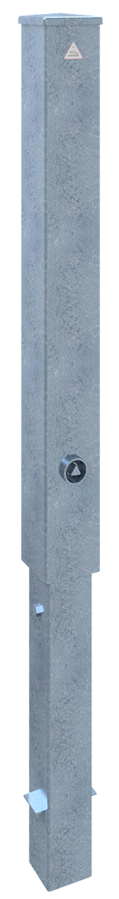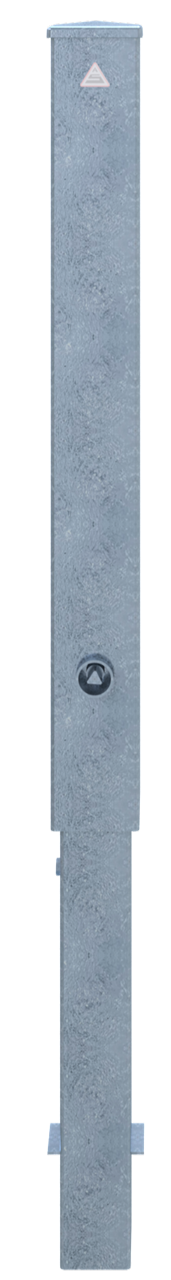 Absperrpfosten Vierkantrohr 100 x 100 x 3 mm mit aufgeschweißter Stahlkappe 950 mm Überflur herausnehmbar, mit Dreikantverschluss nach DIN 3223, mit selbsteinrastender Verriegelung mit Bodenhülse Typ 470.10, ca. 500 mm Unterflur