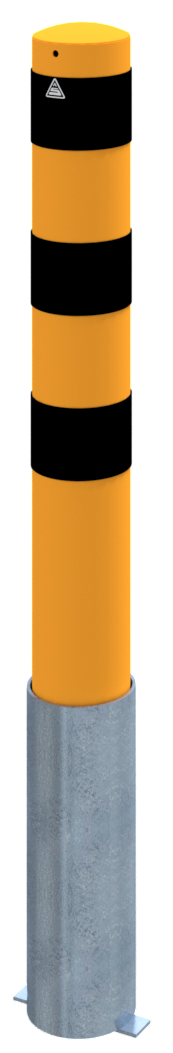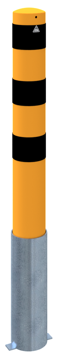 Stahlrohrpoller Ø 152 x 3,2 mm feuerverzinkt und gelb beschichtet mit drei schwarzen Streifen