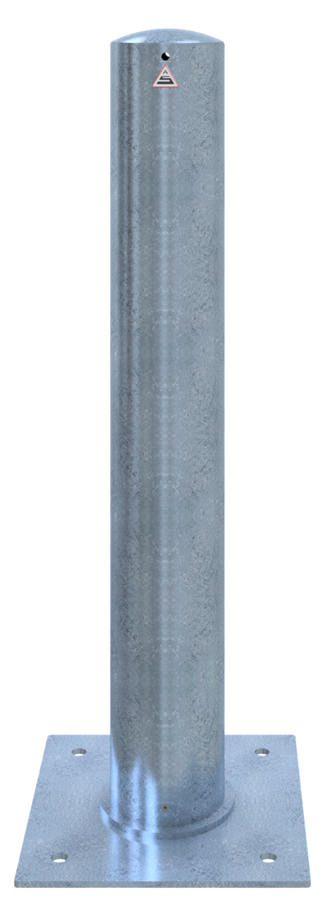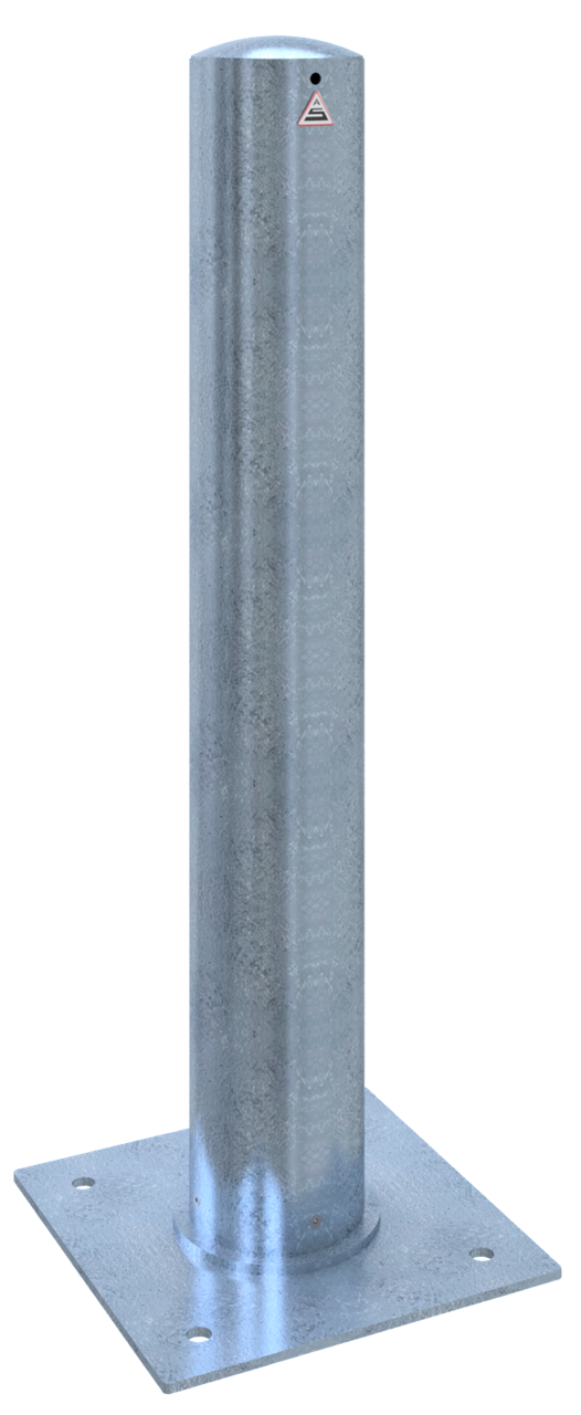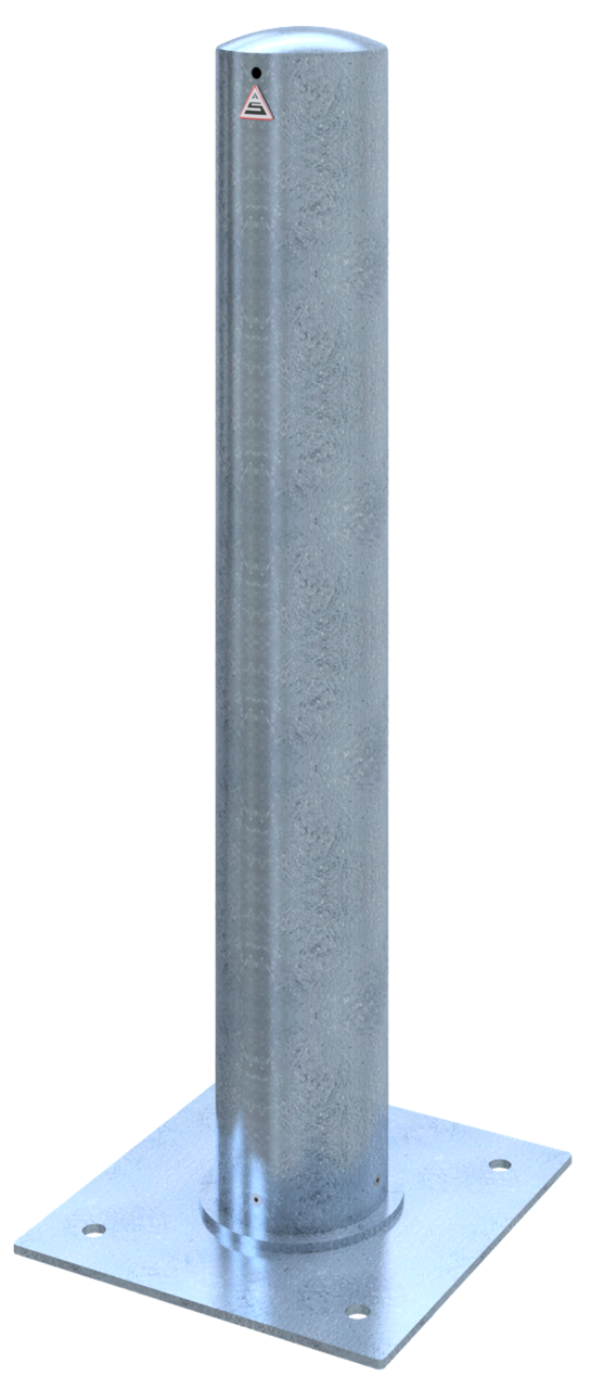 Stahlrohrpoller Ø 152 x 3,2 mm ortsfest, zum Aufdübeln mit aufgeschweißter Stahlkappe neigbar mit starker Zugfeder Dieser neigbare Stahlrohrpoller ist für hohe Anfahrbelastungen geeignet und stellt sich bei Entlastung automatisch in die Ausgangsposition zurück Das Signal bietet eine Hilfestellung bei engen Verkehrswegen mit dem Staplerverkehr, um vorbeugend keine Gegenstände zu beschädigen.