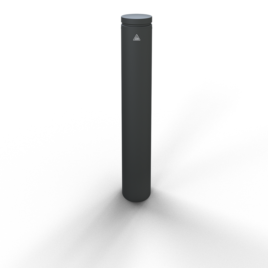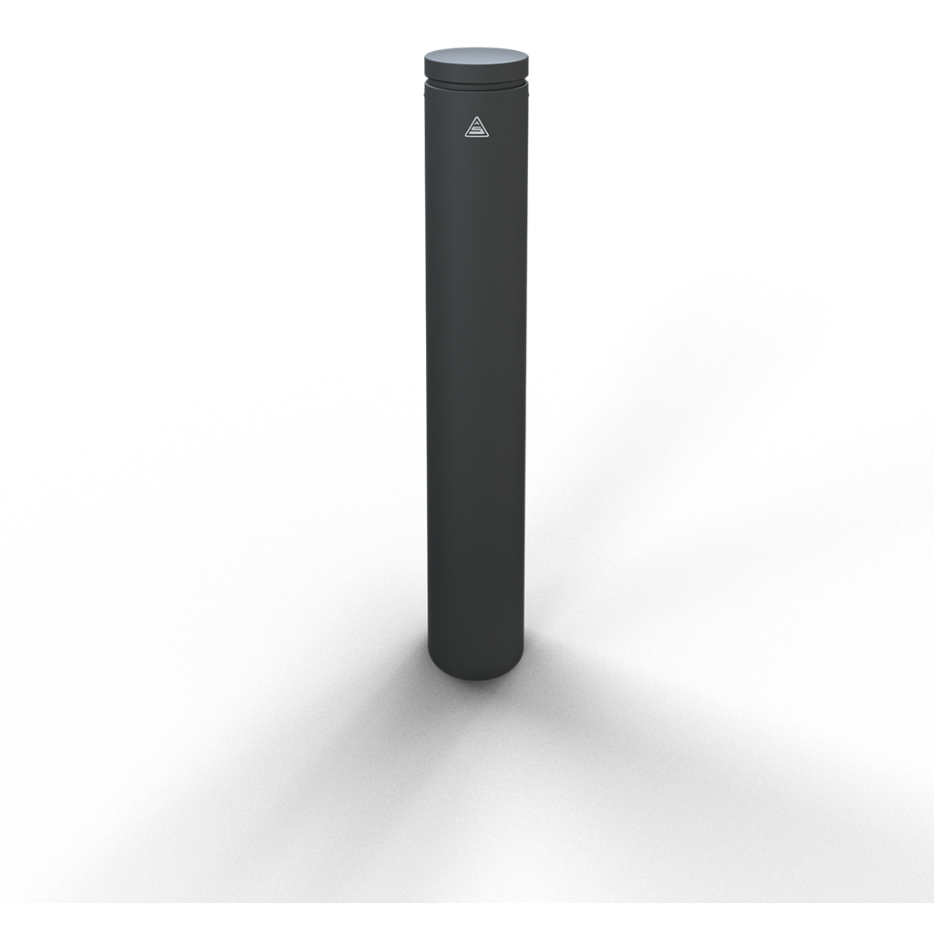 Stilpoller aus Stahlrohr Ø 150 mm mit Alukopf und Zierring ca. 950 mm Überflur, feuerverzinkt und anthrazitgrau (Eisenglimmer), pulverbeschichtet