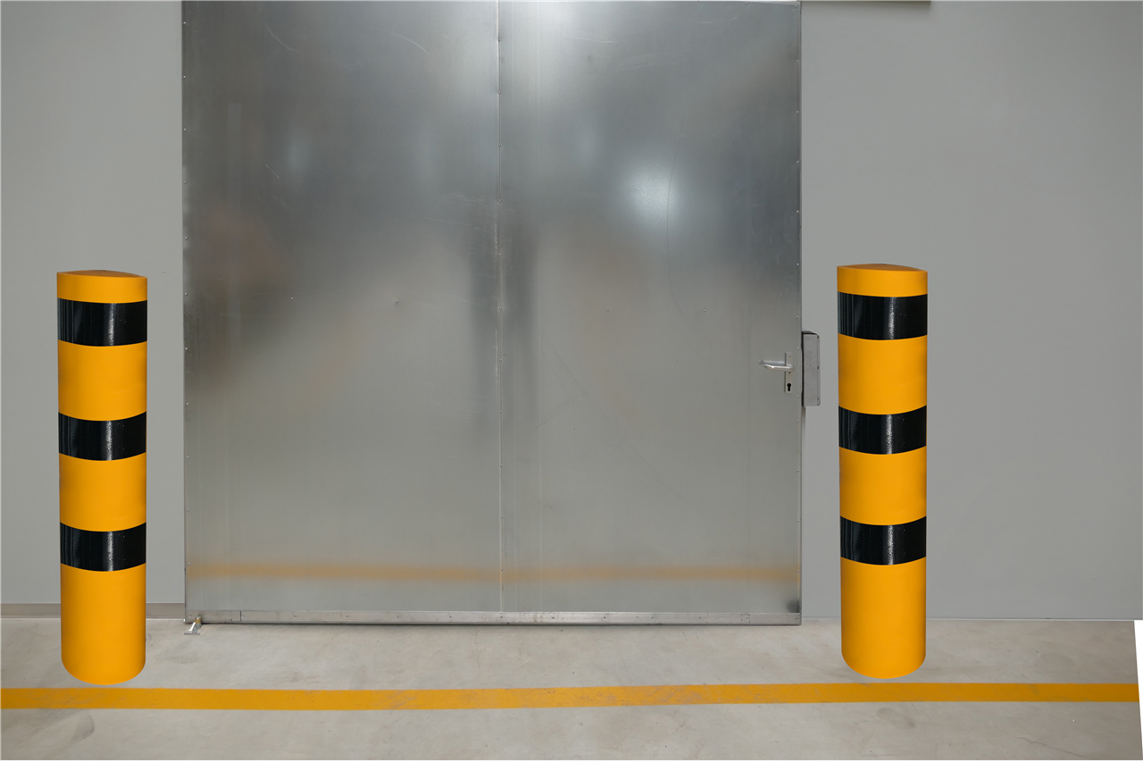 Stahlrohrpoller Ø 273 x 5 mm feuerverzinkt und gelb beschichtet mit drei schwarzen Streifen