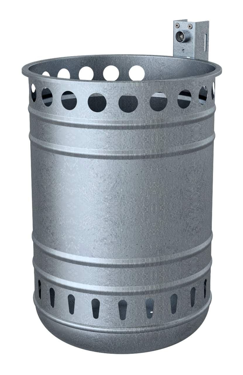 Abfallbehälter zur Wand- oder Pfostenbefestigung Abfallbehälter ca. 35 L mit Schiene und Schlüssel, Höhe 450 mm, Ø 320 mm
