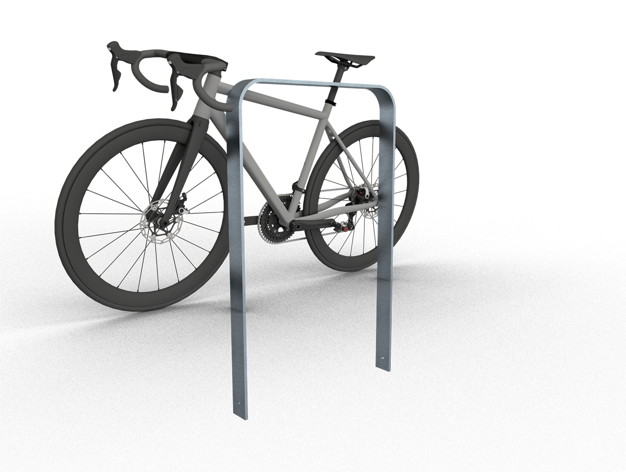 Anlehnbügel aus Flachstahl 80 x 12 mm in gebogener Ausführung ·zum Einbetonieren ·feuerverzinkt und optional pulverbeschichtet in DB 703 ·Gesamthöhe ca. 1200 mm