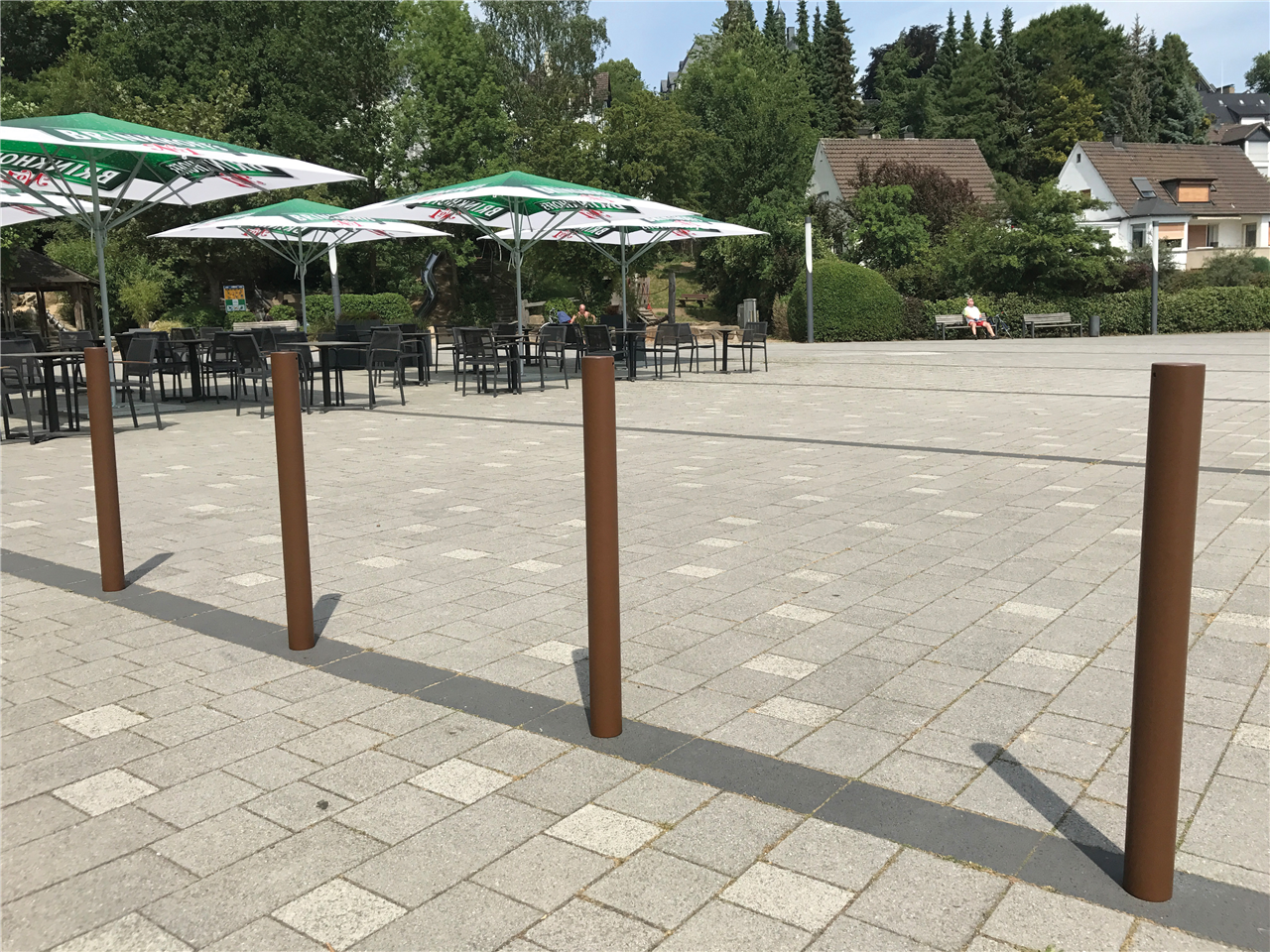 Stilpoller aus Stahlrundrohr Ø 76 mm mit Flachkopf, 900 mm Überflur, feuerverzinkt und DB 703 beschichtet