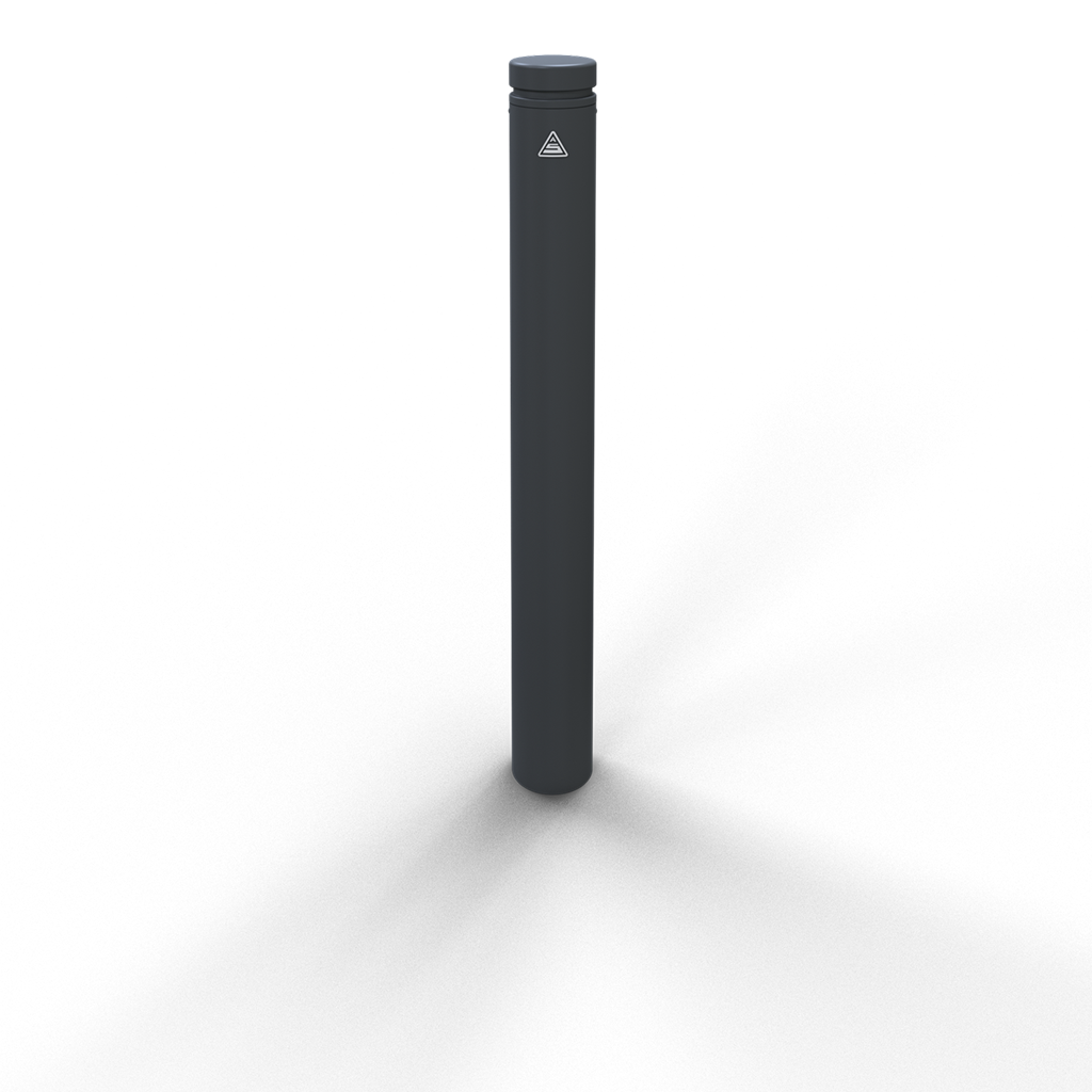 Stilpoller mit Alukopf und Ziernut aus Stahlrohr Ø 102 mm ca. 950 mm Überflur, feuerverzinkt und anthrazitgrau (RAL 7016) beschichtet