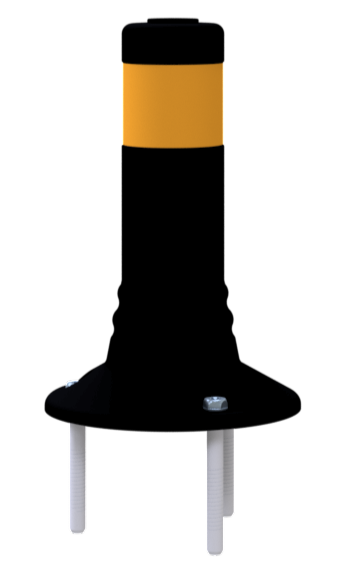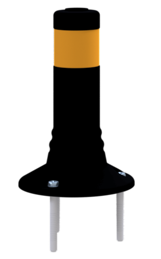 Flexipfosten schwarz, selbstaufrichtend, Ø 80 mm, PUR, mit gelb reflektierenden Streifen, inkl. 3 Schrauben und Dübel