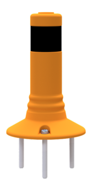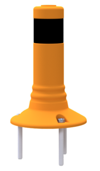 Flexipfosten gelb, selbstaufrichtend, Ø 80 mm, PUR, mit schwarzen Streifen, inkl. 3 Schrauben und Dübel
