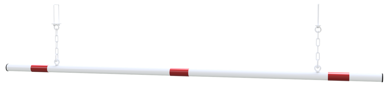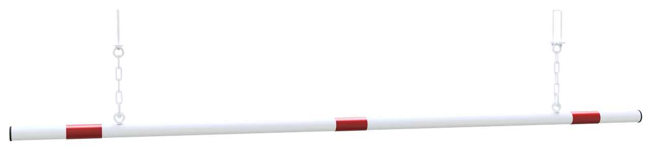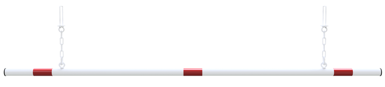 Barriere aus Alurohr, Ø 40 mm, weiß beschichtet mit rot reflektierenden Streifen, mit Universalbefestigung, inkl. Kette zur Befestigung am Querholm des Höhenbegrenzers