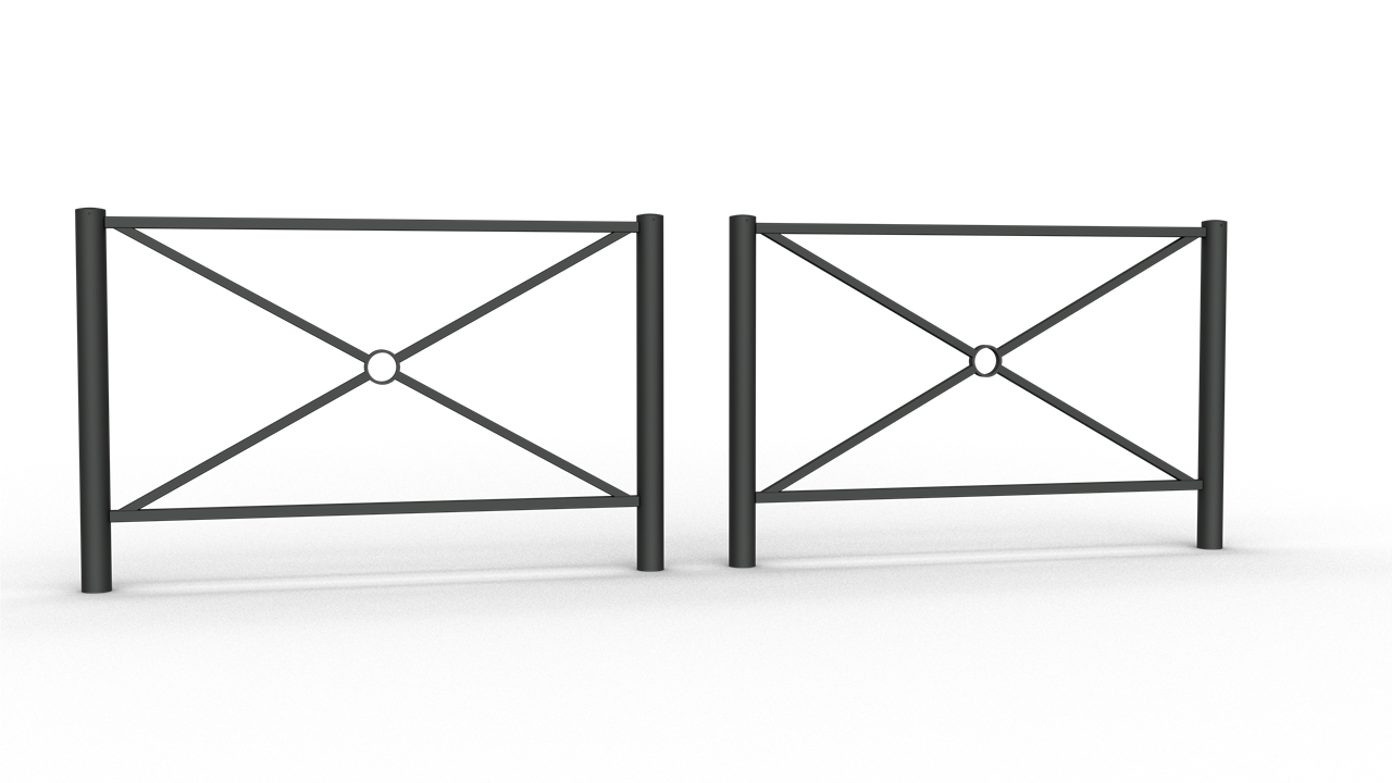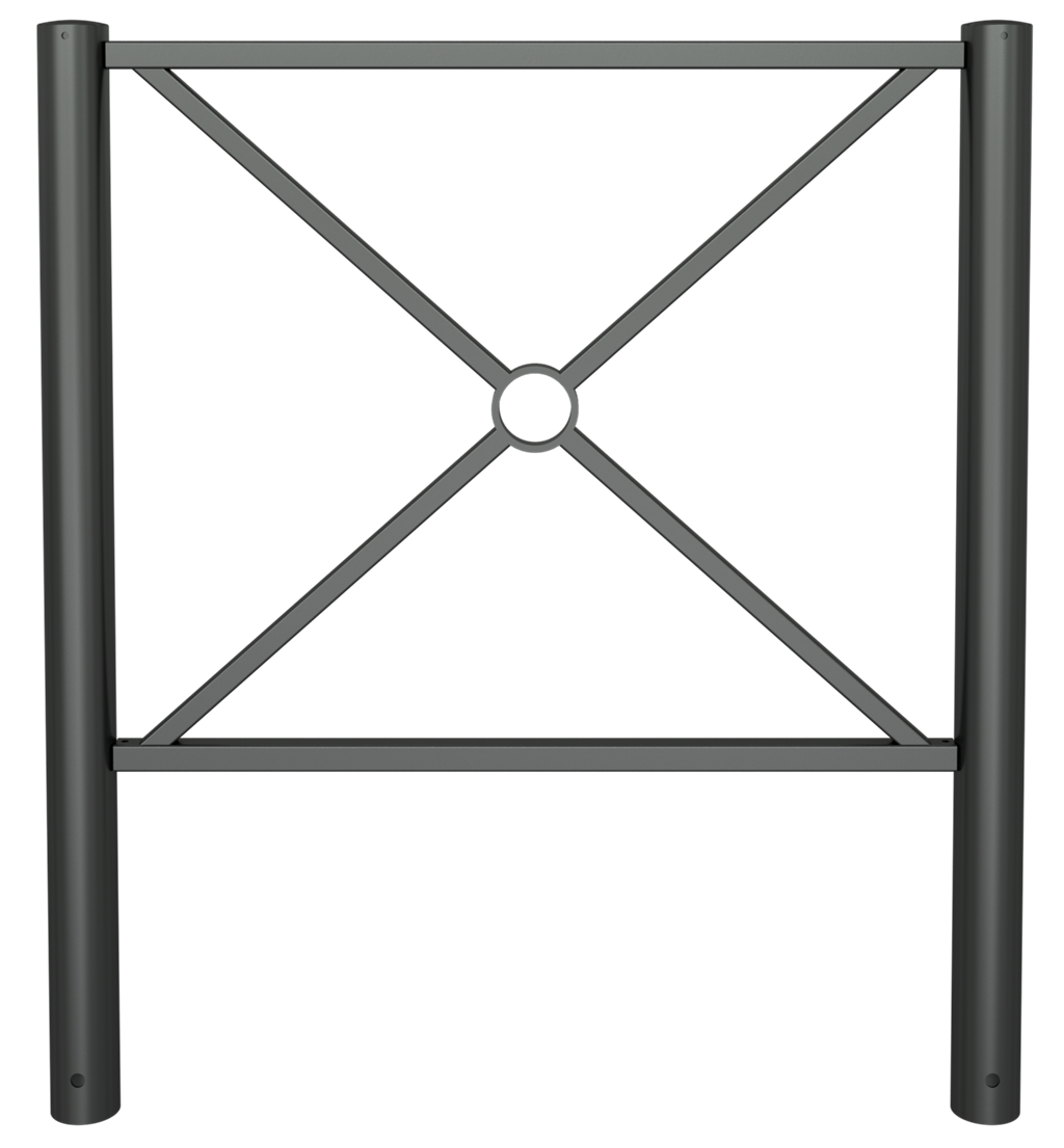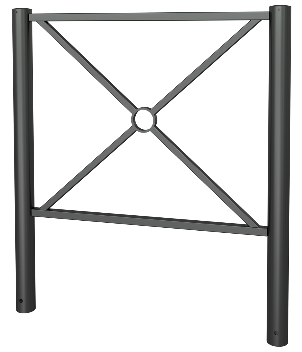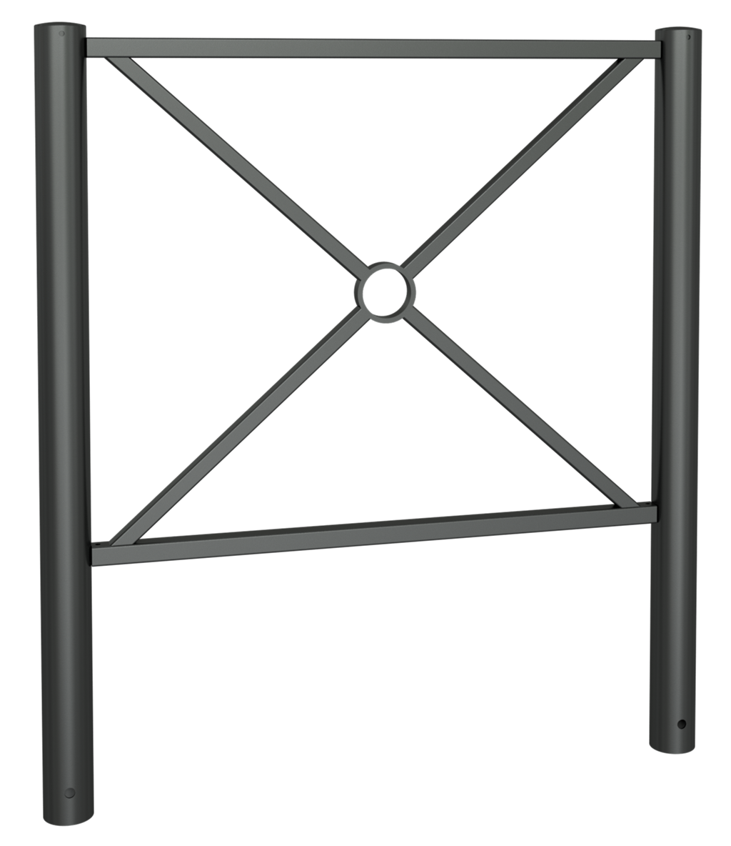 Stadtzaunelement Senkrechte Stahlrohre Ø 76 mm horizontale Stahlrohre 30 x 30 mm diagonale Stahlrohre 25 x 25 mm Gesamthöhe 1200 mm feuerverzinkt und pulverbeschichtet DB 703