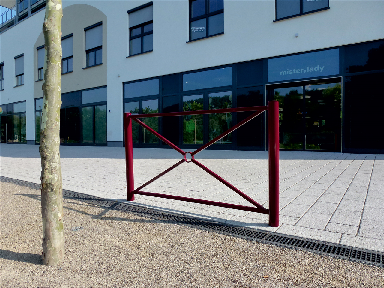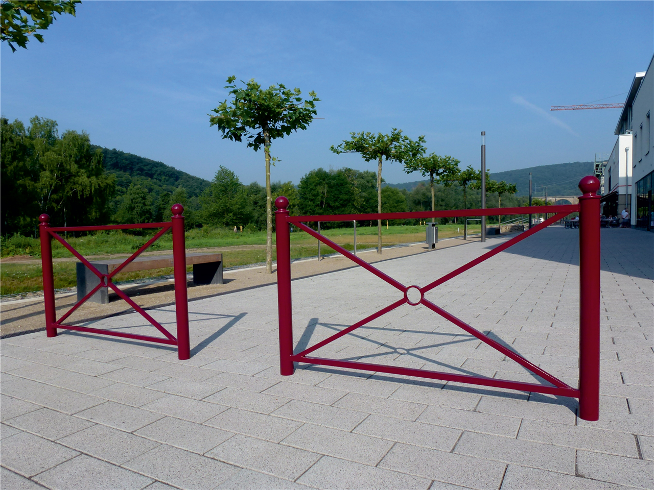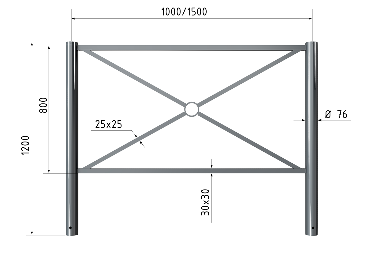 Stadtzaunelement Senkrechte Stahlrohre Ø 76 mm horizontale Stahlrohre 30 x 30 mm diagonale Stahlrohre 25 x 25 mm Gesamthöhe 1200 mm feuerverzinkt und pulverbeschichtet DB 703