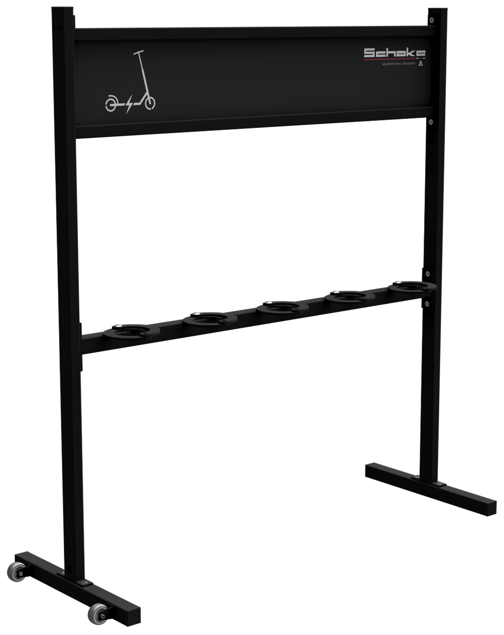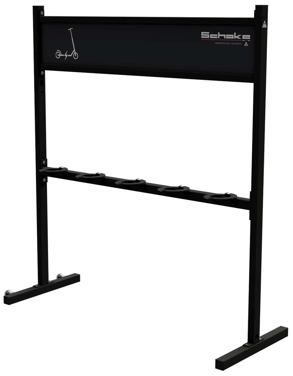 Mobiler Scooterständer mit Werbeschild ·5 Einstellplätze ·Ausführung: galvanisch verzinkt, beschichtet in RAL 9005