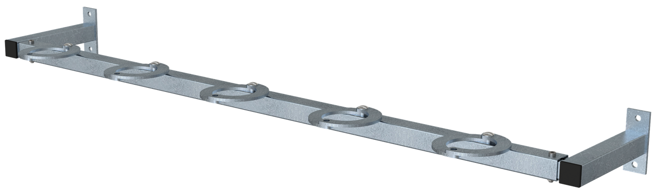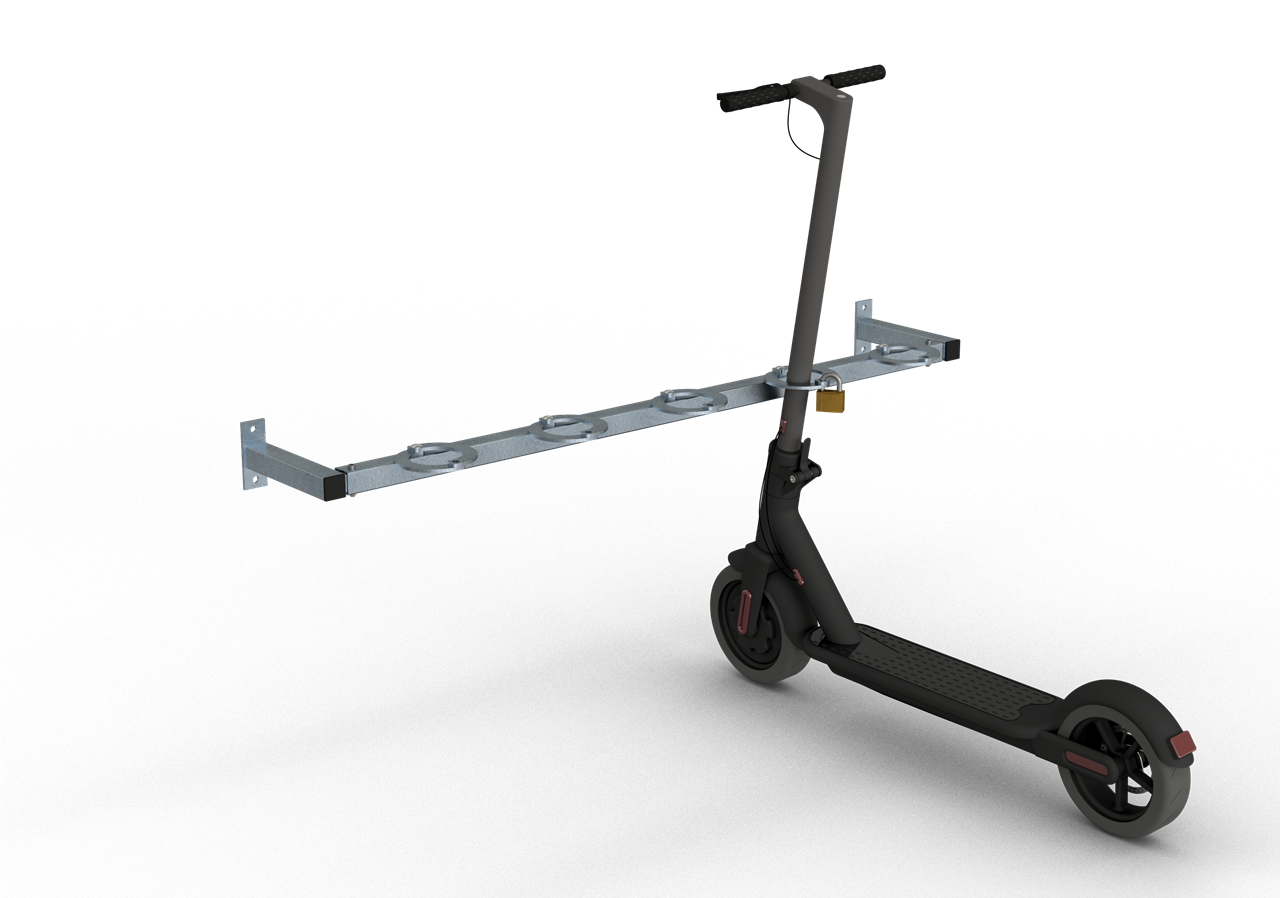 Scooter – Reihenparker Um Roller oder E-Scooter ordentlich und sicher abzustellen. ·mit verschließbaren Halteringen für Vorhangschloss als Diebstahlschutz ·die abschließbaren Ringe können beliebig auf und zu gezogen werden, durch die parallelen Löcher auf den beiden Blechen kann ein Vorhangschloss zur Sicherung des Gerätes angeschlossen werden ·Vierkantquerträger aus Stahlrohr 40 x 40 mm ·Gesamtbreite 1500 mm für 5 Einstellplätze ·Höhe ca. 650 mm Überflur ·feuerverzinkt