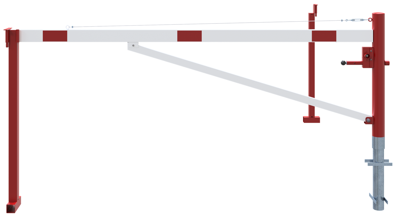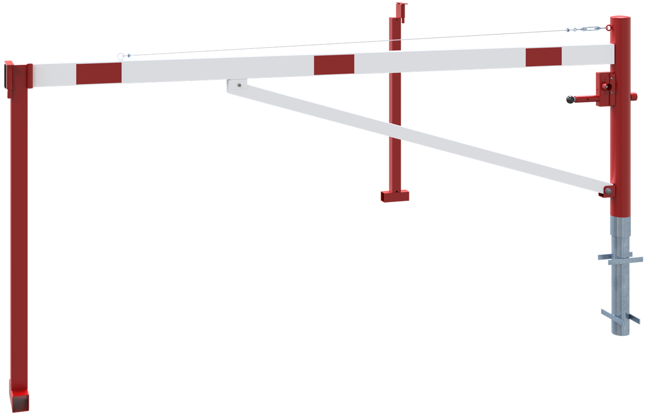 Drehschranke mit Auflagepfosten und Seilzugverstärkung