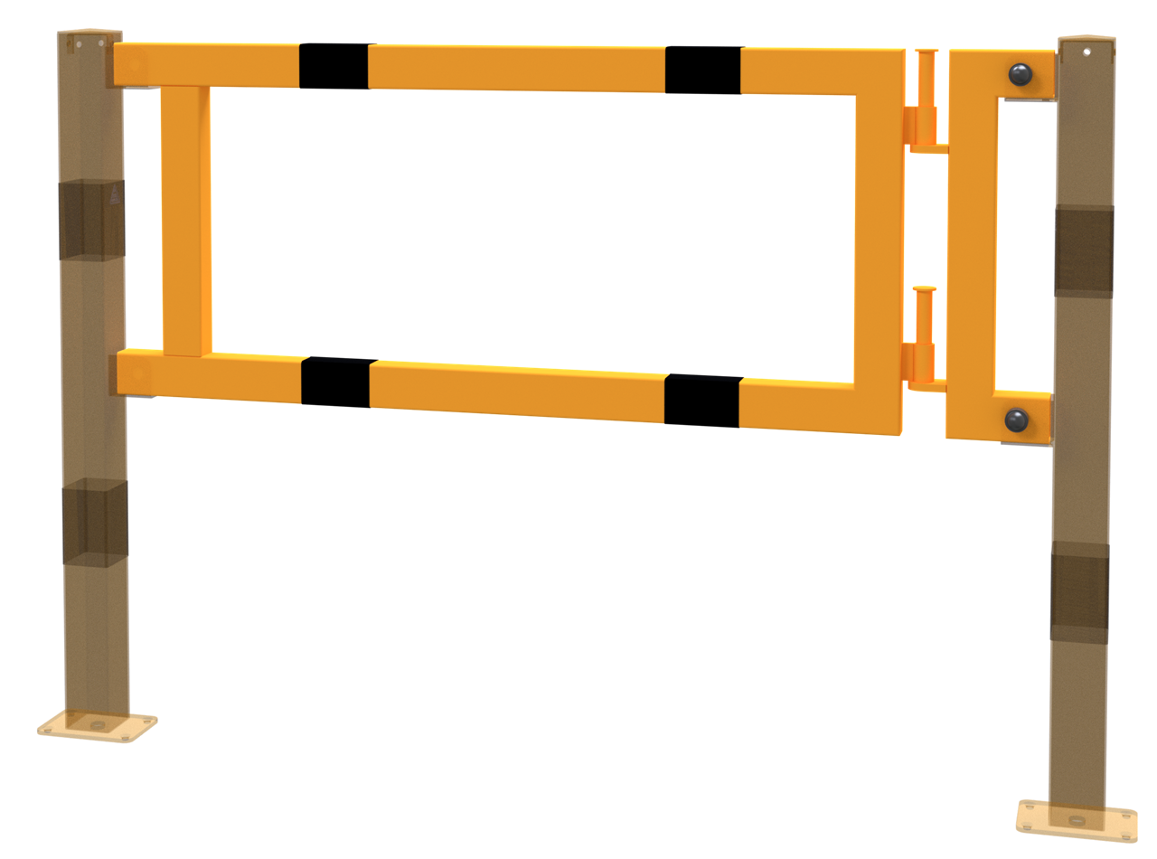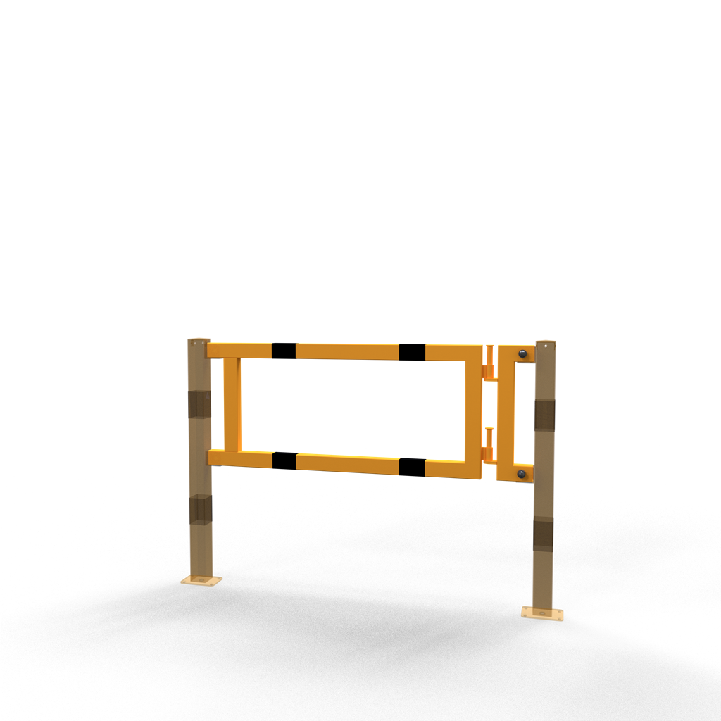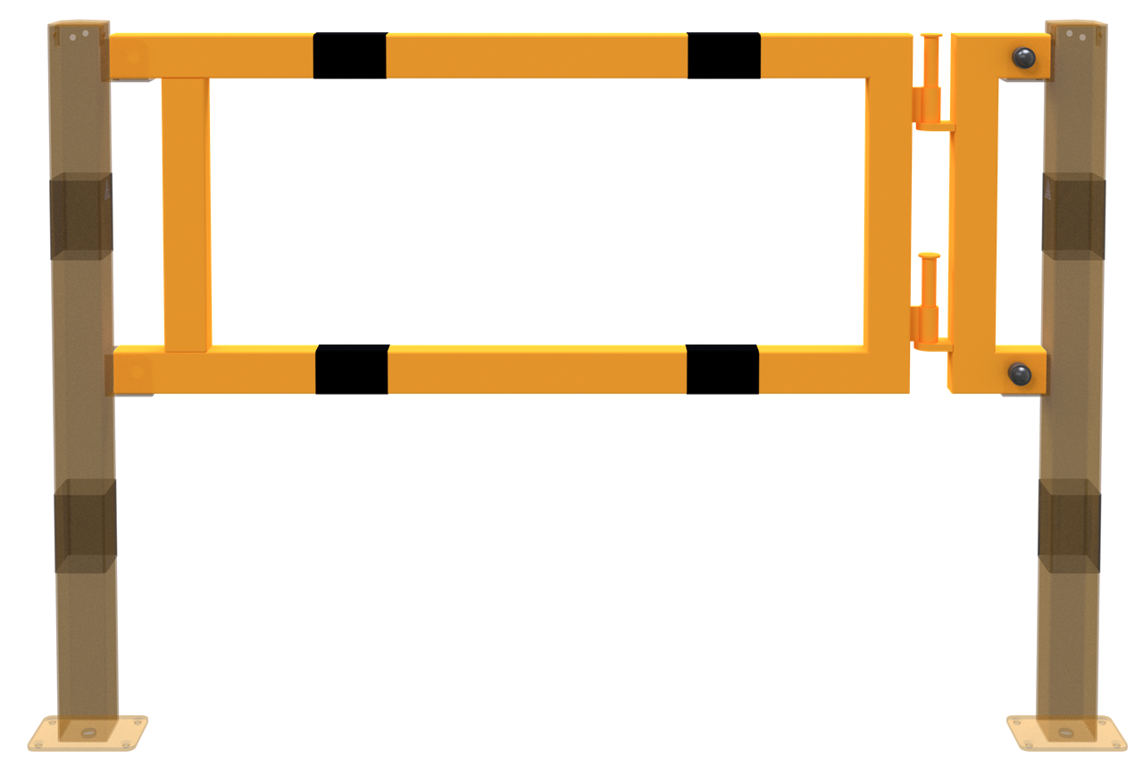 Torelement zum Einlegen in die normalen Standpfosten, aus Stahlrohr: 60 x 40 mm, inkl. Befestigungsmaterial, feuerverzinkt und gelb beschichtet mit schwarzen Streifen