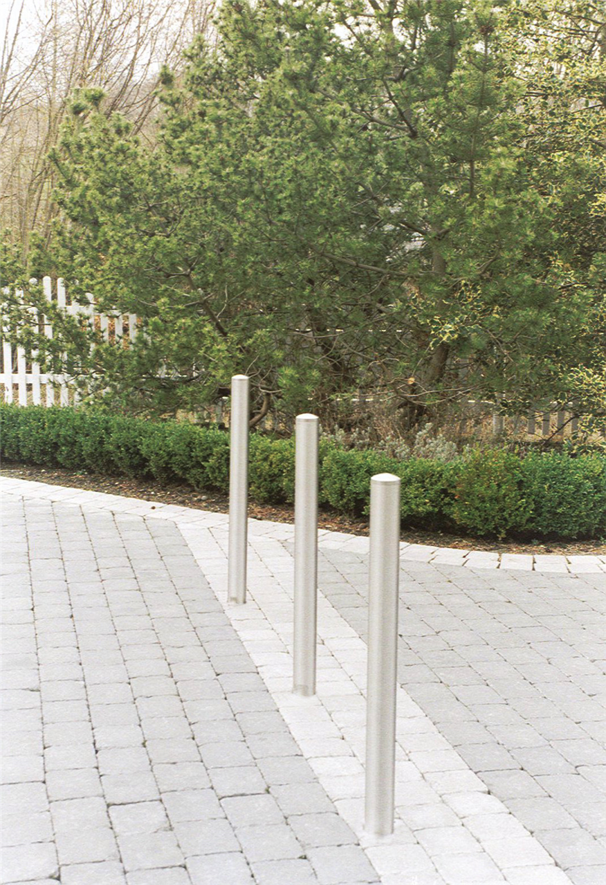 Edelstahlpfosten Ø 76 mm ·Überflur ca. 900 mm ·geschliffen ·gewölbte Kopfform ·mit Ziernut