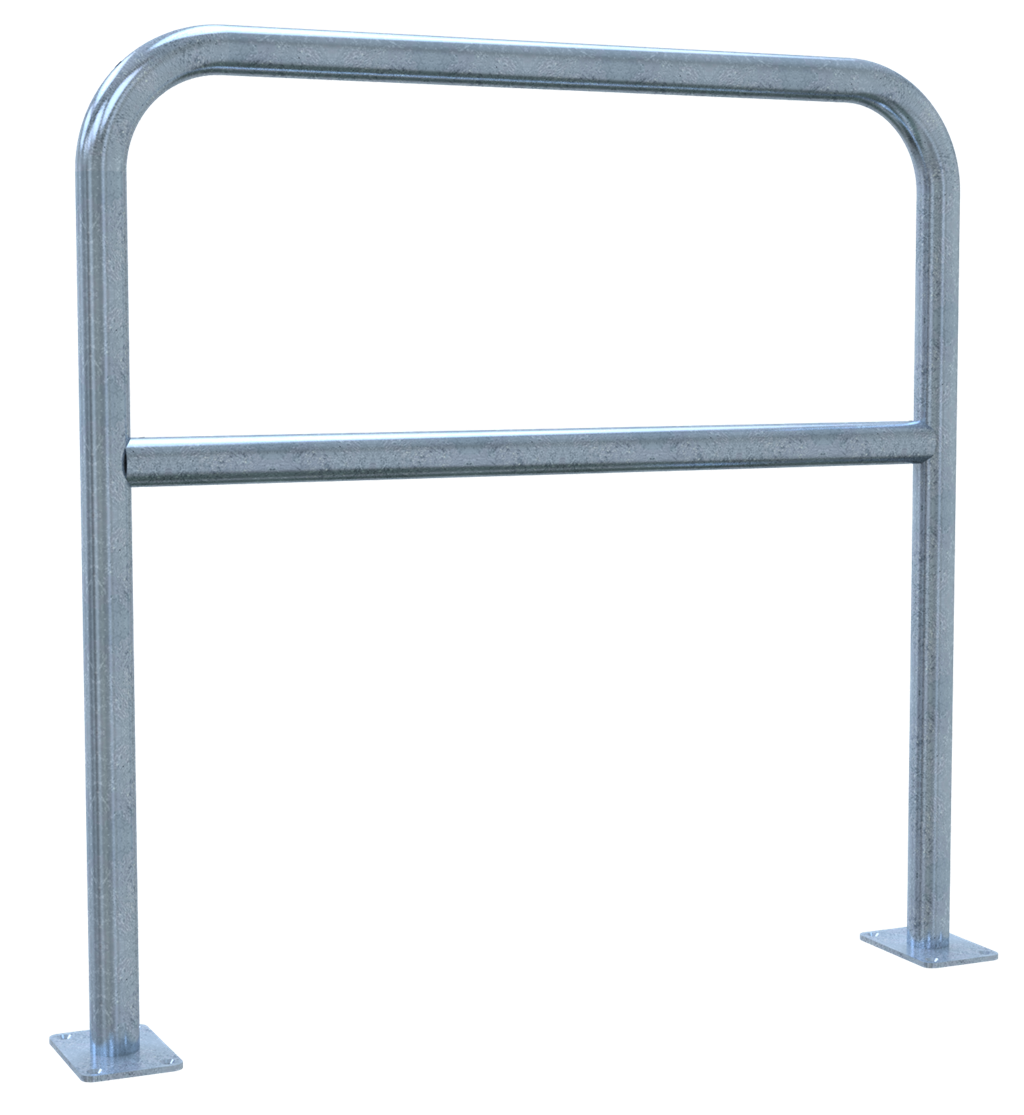 Rohrbügel aus Stahlrohr Ø 48 x 2,5 mm mit Querholm für Dübelbefestigung