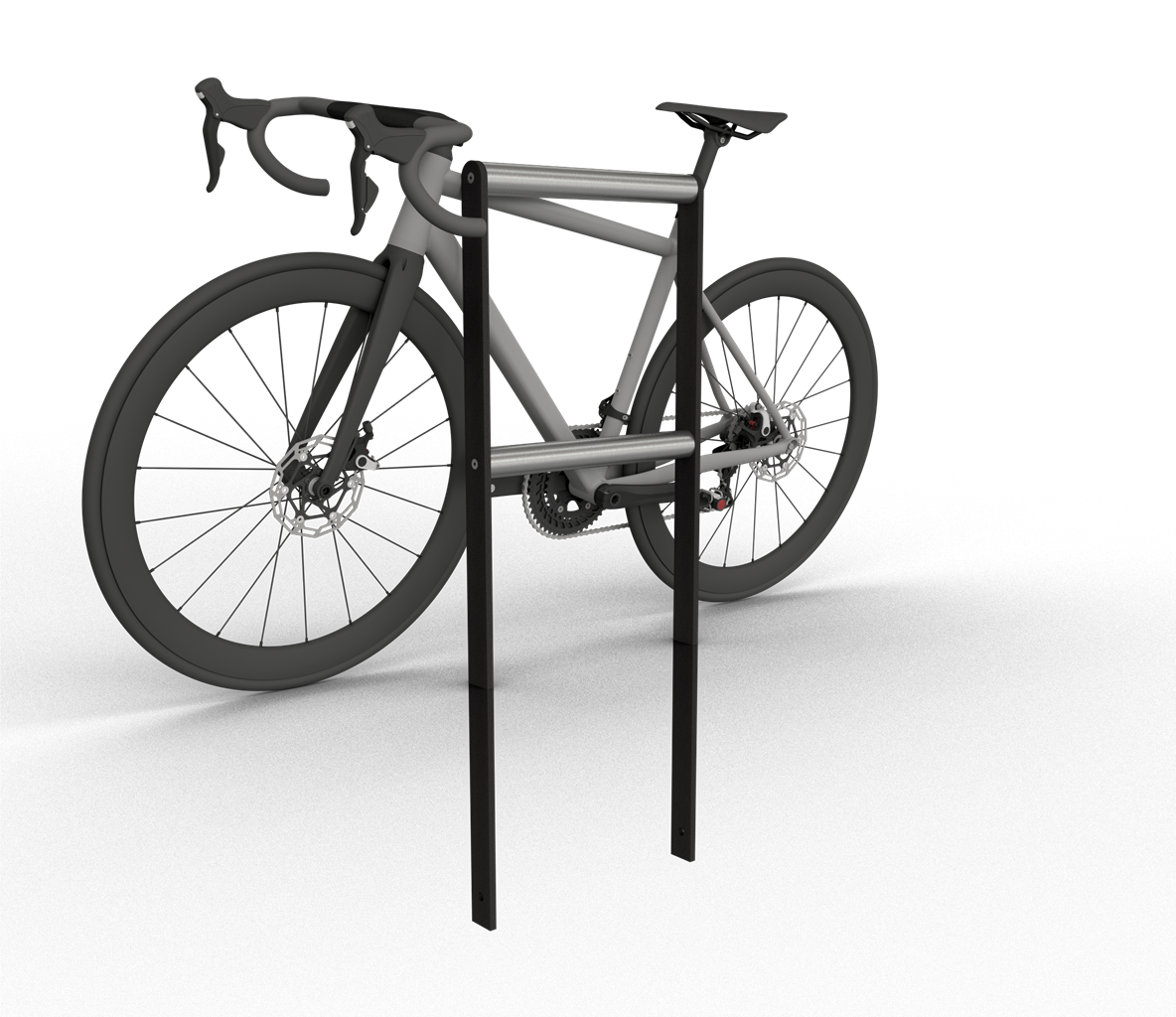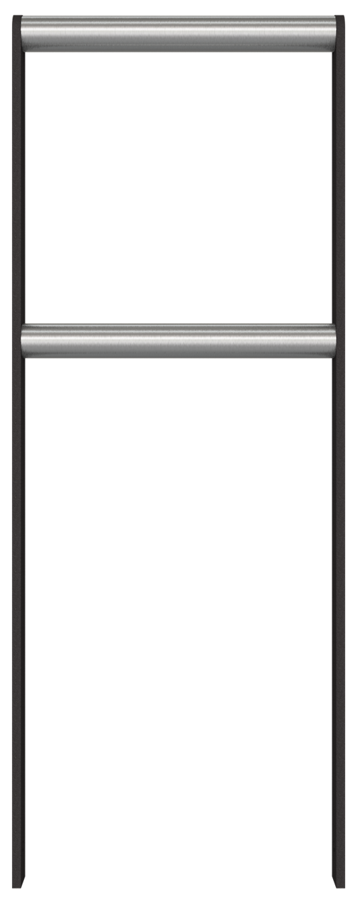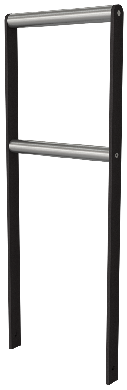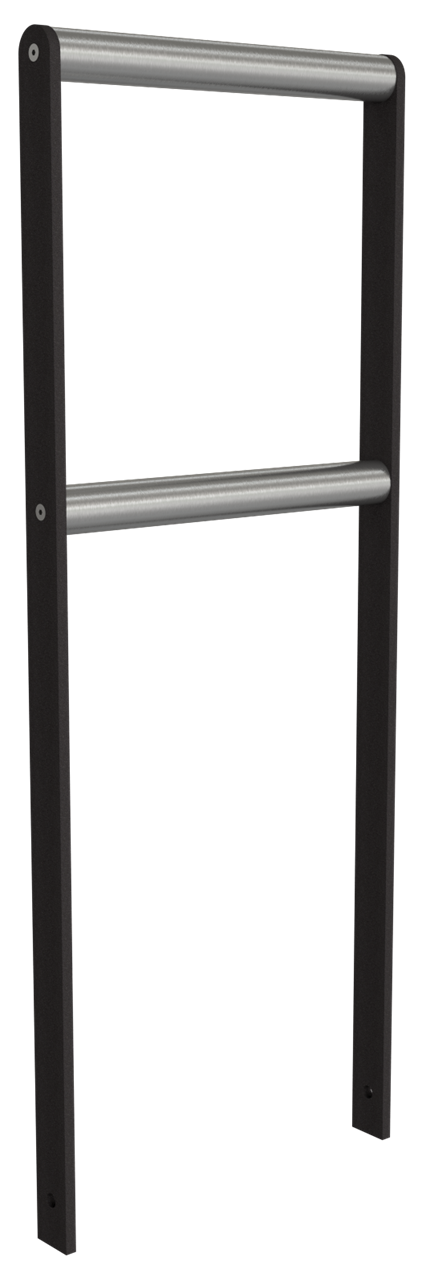 Anlehn-Absperrbarriere Flachstahl 50 x 12 mm, feuerverzinkt und beschichtet DB 703, mit 2 Querstreben aus Edelstahlrohr Ø 48 mm Oberfläche geschliffen, Gesamthöhe ca. 1200 mm