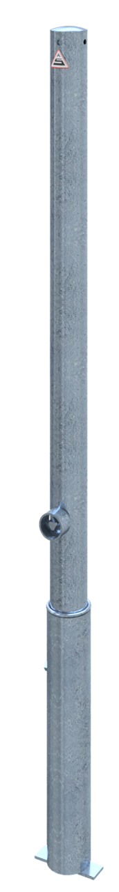 Absperrpfosten Stahlrohr Ø 60 x 2,5 mm mit aufgeschweißter Stahlkappe 900 mm Überflur herausnehmbar, mit Dreikantverschluss nach DIN 3223, selbsteinrastende Verriegelung, mit Bodenhülse Typ 460.40, ca. 400 mm Unterflur