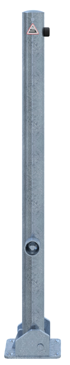Absperrpfosten Stahlrohr Ø 60 x 2,5 mm mit aufgeschweißter Stahlkappe 900 mm Überflur umlegbar, mit Dreikantverschluss nach DIN 3223, selbsteinrastende Verriegelung