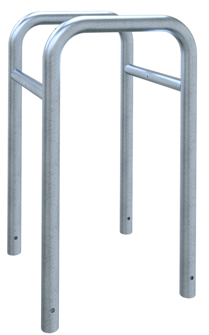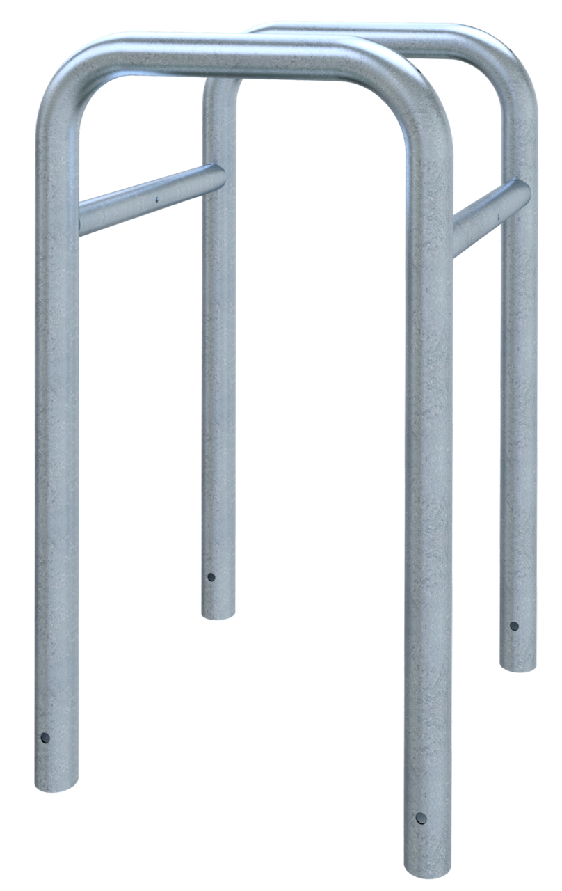 Umlaufender Baumschutz und Säulenschutz - zum Einbetonieren - bestehend aus 2 Steckbaren Rohrbügeln Ø60mm, mit angeschweißte Stutzen Ø48mm zum ineinanderstecken