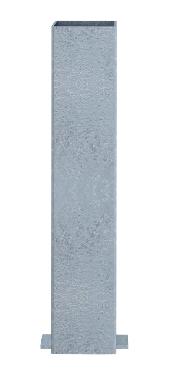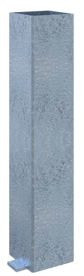 Bodenhülse aus Vierkantrohr 80 x 80 mm, feuerverzinkt, mit Erdanker.